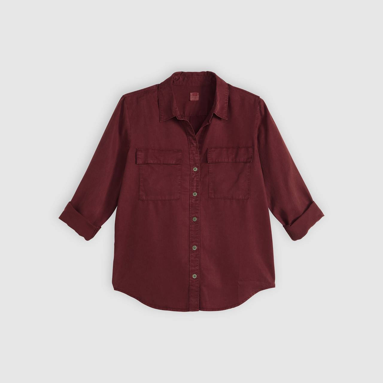 Inspired by classic workwear, our Doreen Utility Shirt features a timeless button-up front, two oversized patch pockets and versatile long sleeves that you can wear rolled up or down. - A utilitarian-inspired shirt - Cut with a standard fit - With a button-up front - Features two oversized patch pockets - With adjustable long sleeves - Made with ECOVERO™, a soft fiber sourced from wood. ECOVERO™ is a trademark of Lenzing AG. Style # A74670034 Color: Chocolate Truffle - White How it Fits - Standard fit Composition & Care - 100% Lyocell (Lenzing TENCEL™ Lyocell) - Twill - Point collar - Long sleeves - Imported