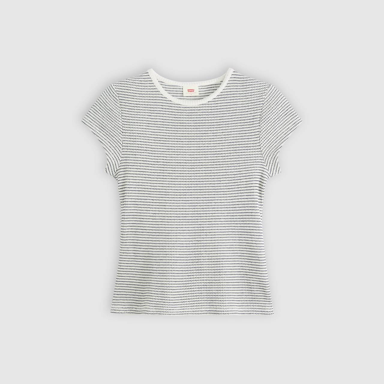 Inspired by one of the first knitwear pieces we made in the early 1900s, Levi's® Dry Goods was resurrected in the late '90s—and now, it's back again. This Cap-Sleeve Tee is as comfortable as it is practical thanks to its waffle-knit design, cap sleeves and figure-hugging slim fit. - Part of Levi's® Dry Goods: a collection of all the pieces we loved in the ‘90s, made for today - A waffle-knit tee - Cut with a slim fit - Finished with delicate lace trim around the sleeves and neckline Style # 003PW0002 Color: Gardenia Stripe - Blue How it Fits - Slim fit Composition & Care - 95% Cotton, 5% Elastane - Crewneck - Capped sleeves - Imported