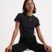 Classics like our Essential Sporty T-Shirt never go out of style. We made this one with an ultra-flattering high neckline and a fitted cropped cut—all topped off with our signature red tab. - An essential tee - With a fitted, cropped cut - Finished with our signature red tab Style # A74190001 Color: Caviar - Black How it Fits - Slim fit Composition & Care - 60% cotton~40% polyester (Generic) - Crewneck - Short sleeves - Imported
