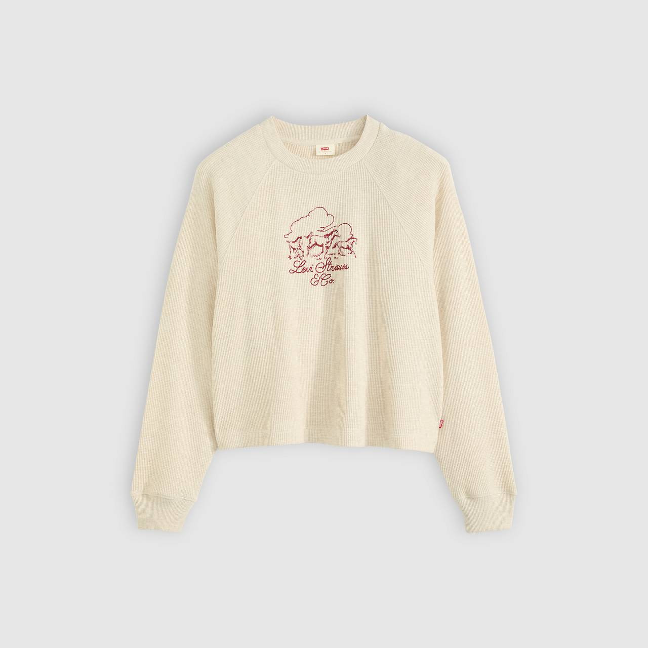 We took an extra comfortable pullover and gave it a western upgrade. Our Graphic Lassen Crewneck features a laidback, relaxed fit and a playful western graphic design. - An extra comfortable waffle-knit top - Cut with a relaxed fit - Finished with a western graphic design Style # 003R40002 Color: Oatmeal Heather - White How it Fits - Relaxed fit Composition & Care - 60% Cotton, 40% Polyester - Crewneck - Long sleeves - Imported