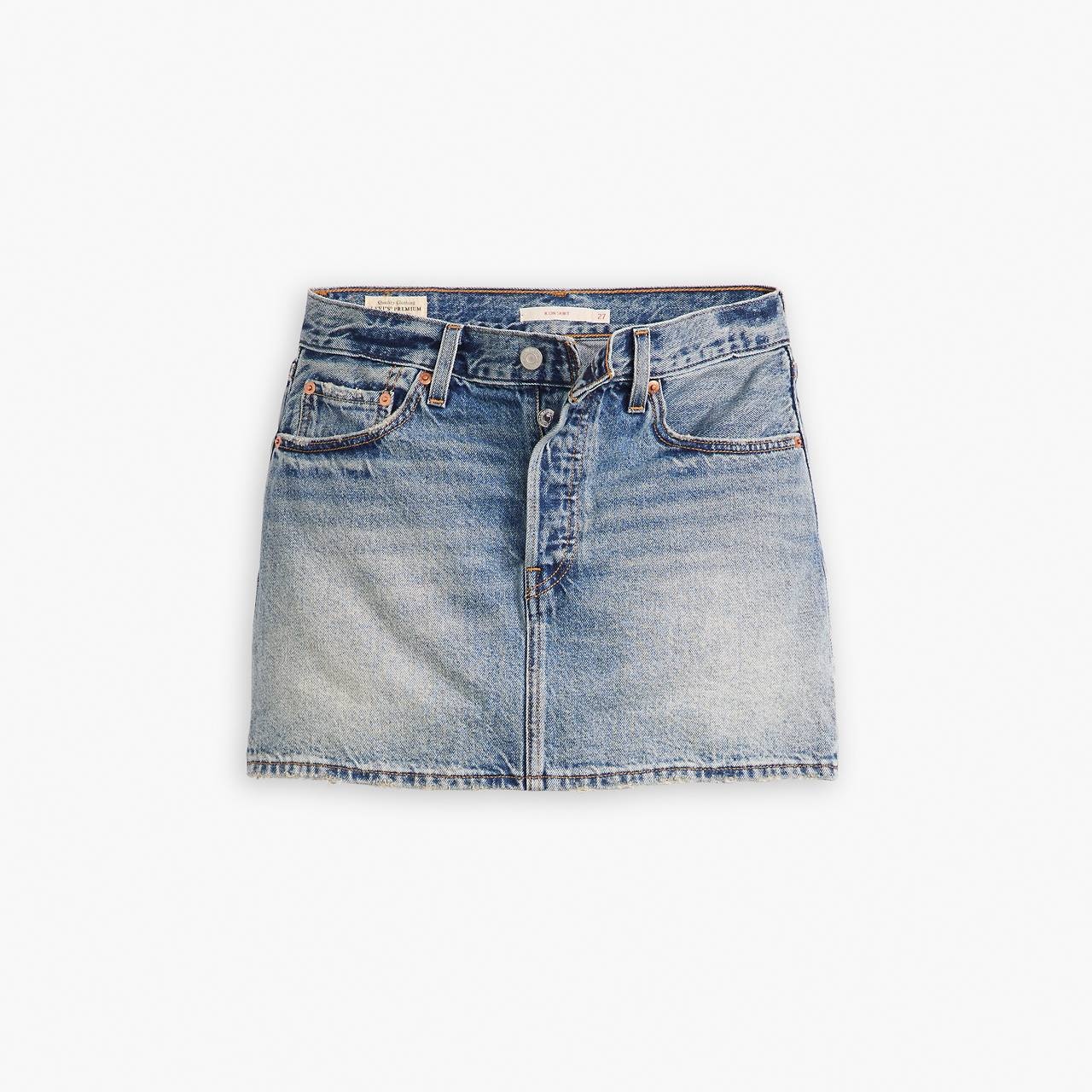 We don’t call it an icon for nothing. This Icon Skirt is the timeless denim skirt you’ve been searching for, with a mid rise and the iconic Levi’s® details you know and love. Flip it over and you’ll find two back pockets that were designed to flatter just like the ones on your favorite 501® jeans. Consider this your new warm-weather essential. - Timeless, mid-rise denim skirt - Featuring iconic Levi’s® details like the original button fly - Back pockets that were designed to flatter just like the ones on your favorite 501® jeans - Consider this your new all-seasons essential Style # A46940022 Color: Right Now - Medium Wash How it Fits - Easy Through The Hip - Mid rise: 14" - Inseam: N/A",Leg opening: 41 1/2",Measurements based on size 27 waist Composition & Care - 100% Cotton - Denim - Non-stretch - Button fly - 5-pocket styling - Wash your jeans once every 10 wears at most; this increases their lifespan and saves natural resources.Machine wash cold, Do not bleach, Tumble dry medium, Hot iron if needed, Dry cleaning possible, Wash inside out with like colors