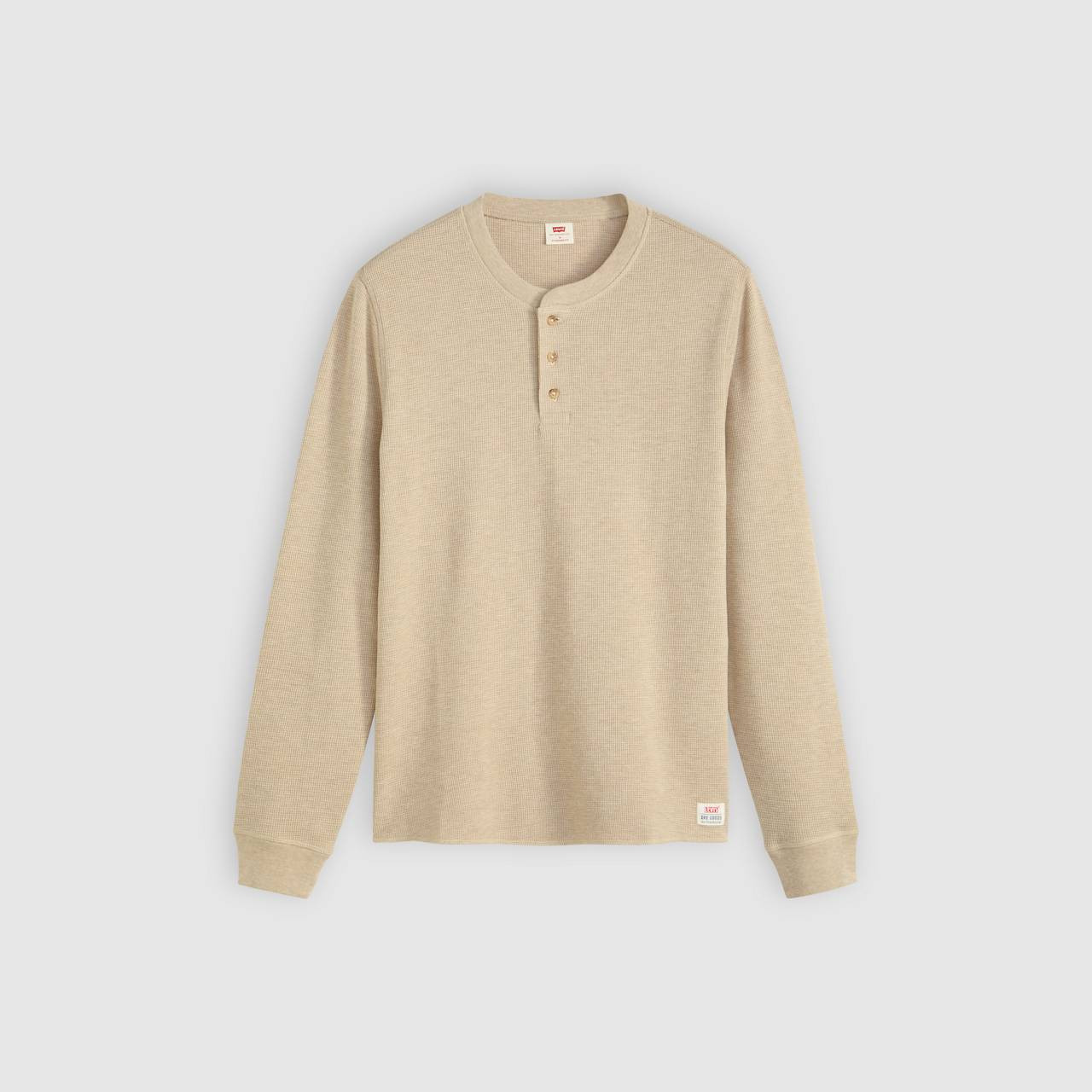 Inspired by one of the first knitwear pieces we made in the early 1900s, Levi's® Dry Goods was resurrected in the late '90s—and now, it's back again. Nothing beats a timeless henley. We made this one with a simple placket, a relaxed fit and supersoft fabric. - Part of Levi's® Dry Goods: Inspired by one of the first knitwear pieces we made in the early 1900s - A classic henley - Cut with a relaxed fit Style # 003R70004 Color: Fungi Heather - Tan How it Fits - Relaxed fit Composition & Care - 60% Cotton, 40% Polyester - Henley - Short sleeves - Imported