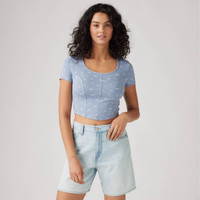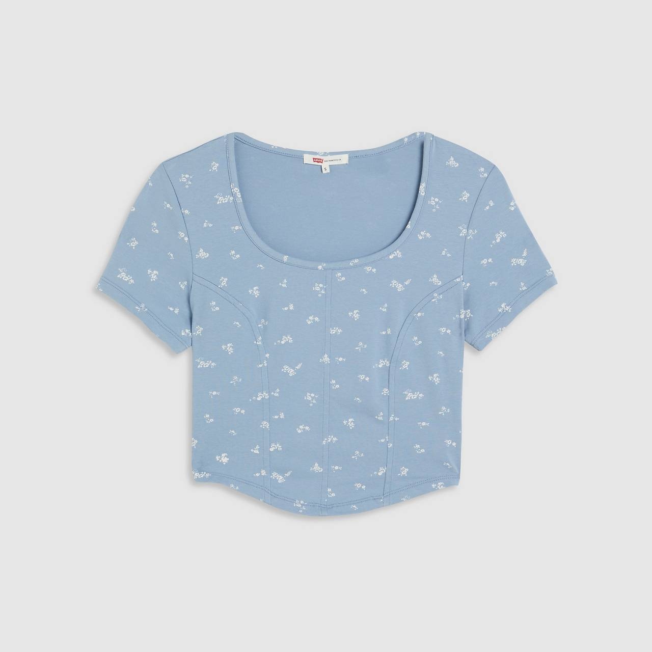 We took it back to the basics we know and love with our Lyra Tee. It features a classic scoop neckline and a figure-flattering cropped fit. Plus, we added seamed detailing for a western-inspired look. - A not-so-basic tee - Cut with a slim, cropped fit - Features seamed detailing Style # 001QI0002 Color: Dusty Blue How it Fits - Slim fit Composition & Care - 95% Cotton, 5% Elastane - Cotton - Crewneck - Short sleeves - Machine wash cold, Do not bleach, Tumble dry low, Warm iron if needed, Do not dryclean, Wash inside out with like colors, Do not iron decoration - Made in Pakistan