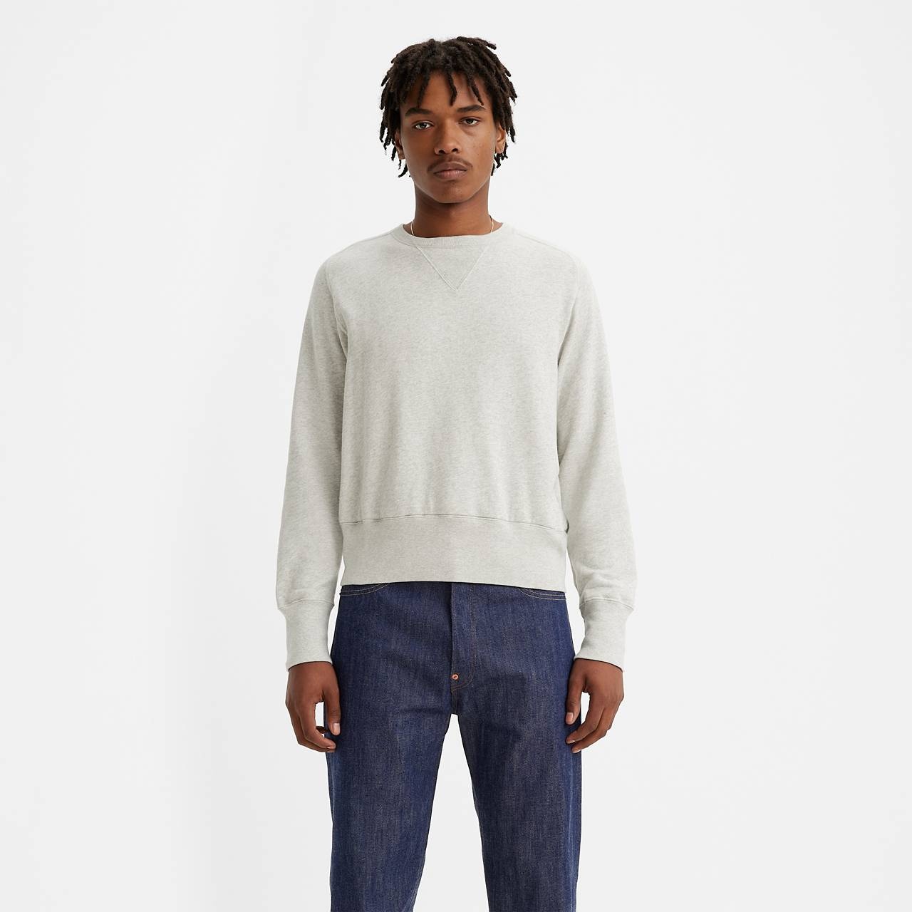 On May 20th, 1873, Levi Strauss and Jacob Davis secured a patent (No. 139,121) for “an Improvement in Fastening Pocket Openings.” The West Coast at that time was a loose patchwork of farms, ranches, railroads and gold mines. Jacob Davis—a tailor from Reno, Nevada—had the idea of placing rivets on work pants at points of strain, and joined forces with his denim supplier Levi Strauss in San Francisco. The riveted blue jean was born. Soon, Levi’s® became the clothing of choice for the rugged, hodgepodge band of workers, outcasts, entrepreneurs and outlaws building America’s future. For Spring/Summer 2023, in celebration of the 150th year anniversary of this patent, we pay tribute to their innovation and collaboration. This Bay Meadows Crew Sweatshirt is an exact replica of one of our 1940s archival garments. Subtle detailing makes it stand out, like the curved seams of its raglan sleeves, the v-shaped inserts at both the front and the back, and its extra-long ribbed sleeve cuffs. - An exact replica of a 1940s archival garment - Brushed fleece for extra softness - Finished with a Original Levi's® Bay Meadows label Style # 219310003 Color: Oatmeal Mele - White How it Fits - Standard fit - Leg Opening: 16.25", Measurements based on size 32. Composition & Care - 100% cotton - Cotton - Crewneck - Machine wash cold - delicate cycle. Wash inside out with like colors, do not bleach, do not tumble dry, warm iron if needed, do not dry clean, reshape while damp and line dry - Imported