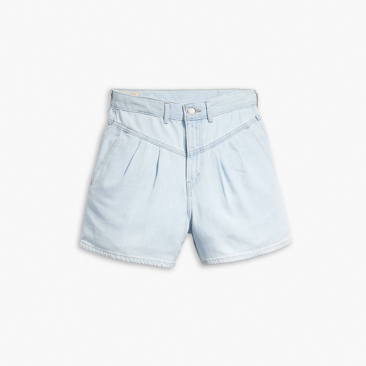 Moms have been coming through with iconic looks since day one, and their comfortable, high-waisted shorts is no exception. These Featherweight Mom Shorts are crafted with a lightweight, soft-to-the-touch fabric and feature a high rise, a loose fit, pleat detailing and a yoke design. - Vintage-inspired shorts - Cut with a loose fit - With a high rise - Finished with yoke detailing - Crafted from lightweight, soft-to-the-touch denim Style # A75130006 Color: Pool Party - Light Wash How it Fits - Loose Through The Hip And Thigh - High rise: 12" - Inseam: 3 1/2",Leg opening: 26 1/2",Measurements based on size 27 waist Composition & Care - 75% cotton, 25% lyocell (Lenzing Tencel™) - Denim - Non-stretch - Zip fly - Non 5 Pocket - Imported
