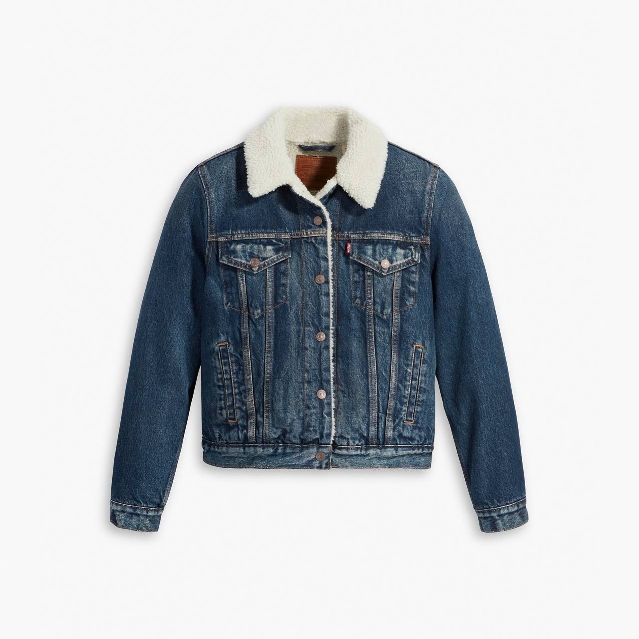You can't go wrong with a classic. Take that classic and ready it for winter? Perfection. Our Original Sherpa Trucker Jacket is the cold-weather version of our timeless Trucker—featuring a cozy lining and collar to keep you warm in the chill. - Our timeless denim jacket, upgraded with a warm Sherpa lining - Soft quilted lining in sleeves - This iconic essential truly looks good on everyone, even when sized up or down - Levi’s® branded metal buttons and tapered “V” stitches make it instantly recognizable - Gets better over time from natural wear with fading, stains and holes Style # 361360063 Color: That New New - Dark Wash How it Fits - Slim fit Composition & Care - 100% cotton - Denim - Long sleeves - Machine wash cold - permanent press cycle, wash and dry with like colors, liquid detergent is recommended, dry cleaning possible, warm iron if needed - Imported