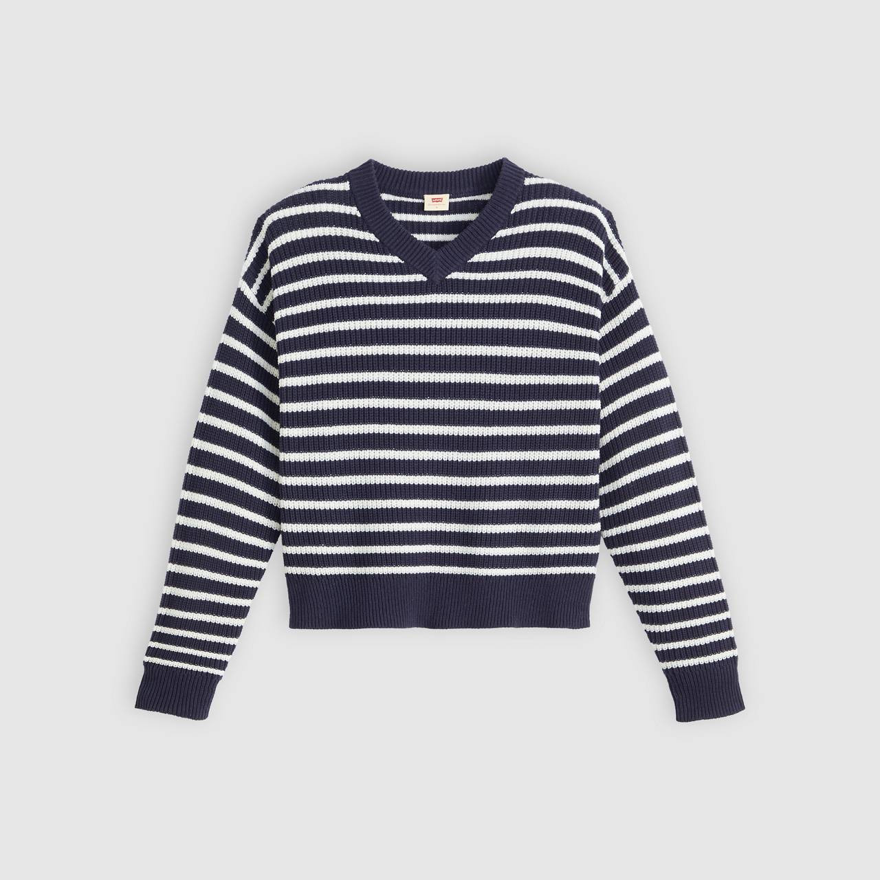 Made to keep you warm and looking good, our Reese V-Neck Sweater features ribbed edges and an easy, relaxed fit. - A warm, ultra-comfortable sweater - Cut with a relaxed fit Style # 0037O0004 Color: Peacoat Stripee - Blue How it Fits - Relaxed fit Composition & Care - 60% Cotton, 30% Polyamide, 10% Wool - Wool Blend - V-neck - Long sleeves - Imported