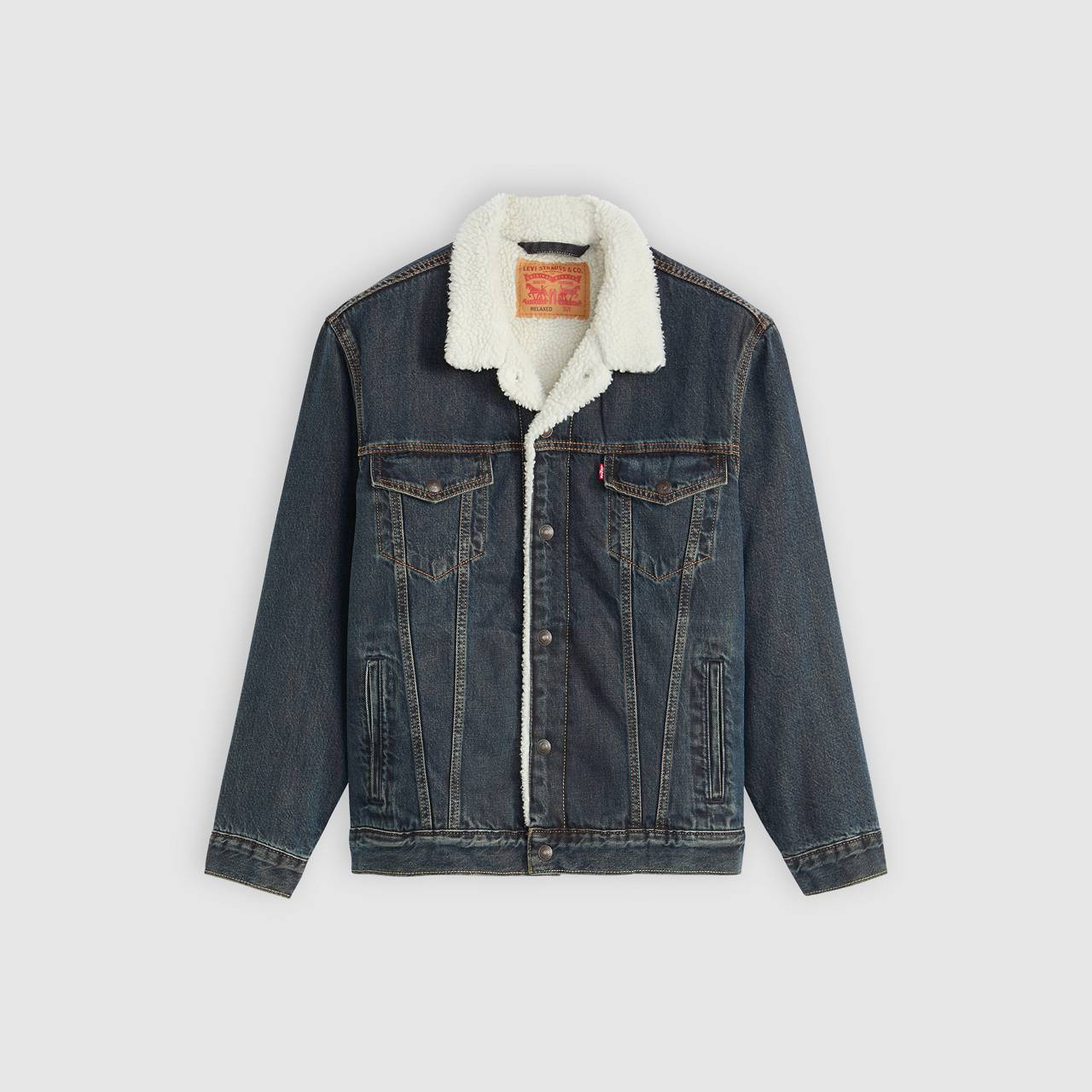 The cozier counterpart to our Original Trucker Jacket, our Relaxed Sherpa Trucker Jacket is constructed with durable denim, lined with fuzzy sherpa for extra warmth and cut with a relaxed fit. Iconic and instantly recognizable, our Trucker Jacket has been a symbol of individual self-expression for decades. - The original jean jacket designed with superior craftsmanship and a cozy sherpa lining - Levi’s® branded metal buttons and tapered “V” stitches make it instantly recognizable - Cut with a relaxed fit - This iconic essential truly looks good on everyone, sized up or down Style # A57840020 Color: Night Shadows - Dark Wash How it Fits - Relaxed fit Composition & Care - Primary Fabric: 100% Cotton; Lining: 100% Polyester - Denim - Point collar - Long sleeves - Imported