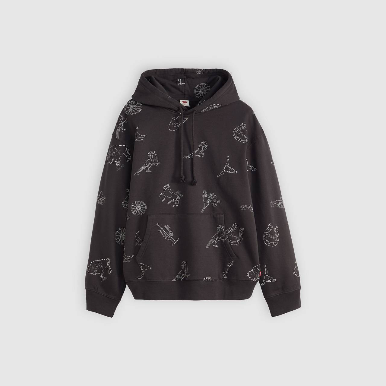 Because sometimes you need a reliable, no-frills hoodie. Our Relaxed Graphic Hoodie is kept simple with a versatile fit and a classic Levi's® graphic. - An essential, cozy hoodie - Supersoft feel—not too thin, not too thick - Finished with a one-of-a-kind graphic - For our vintage lovers: We garment-dyed this piece to give it that lived-in look and broken-in feel Style # 384790418 Color: Western Phantom - Black How it Fits - Relaxed fit Composition & Care - 88% Cotton, 12% Polyester - Brushed Fleece - Hoodie - Long sleeves - Imported