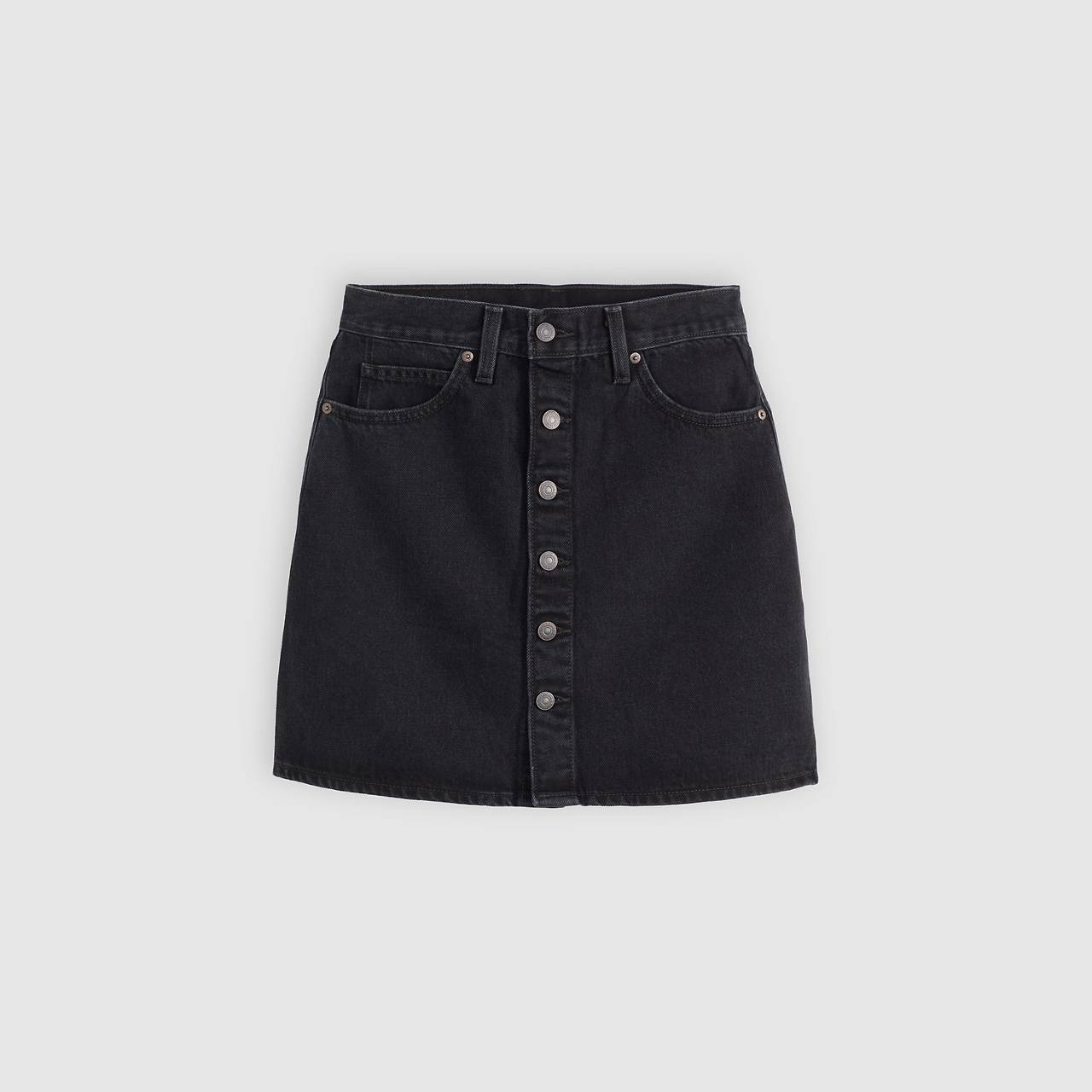 Easy, timeless, and made to go everywhere. Our Retro Button Front Skirt features a flattering A-line fit, a button-up front and the perfect mid-thigh length. - A vintage-inspired skirt, made to go everywhere - Cut with an A-line fit - Finished with a button-up front Style # 003RO0003 Color: Open Mind - Black How it Fits - Mid rise Composition & Care - 95% Cotton, 5% Recycled Cotton - Denim - Non-Stretch - Button fly - 5-pocket styling - Imported