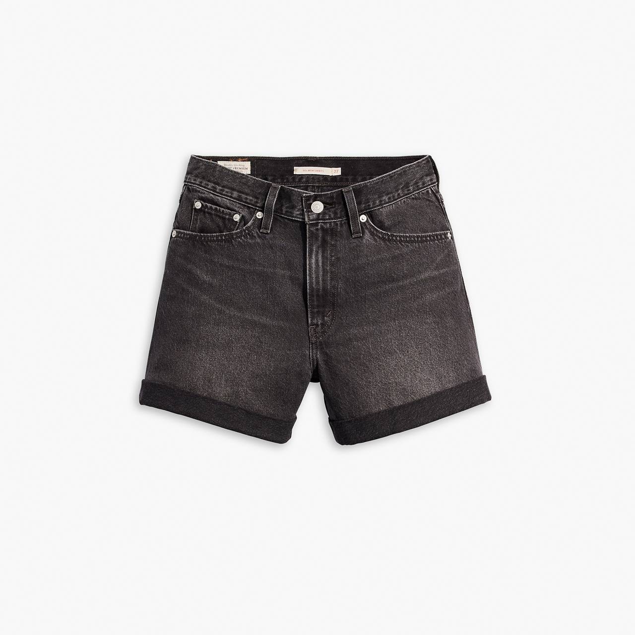A vintage-inspired flattering fit featuring the higher-than-high rise that made the '80s the fashion decade we can’t stop talking about. Think of these Rolled '80s Mom Shorts as your parent’s shorts, but better. - A vintage, 80s-inspired fit - Featuring a 10” high rise - A-line leg opening designed to flatter your legs - With a rolled hem design - We made this garment with post-industrial recycled cotton Style # A55640005 Color: Truth Or Dare - Black How it Fits - Relaxed Through The Hip - High rise: 10 1/4" - Inseam: 4",Leg opening: 25 3/8",Measurements based on size 27 waist Composition & Care - 95% Cotton, 5% Recycled Cotton - Denim - Non-Stretch - Zip fly - 5-pocket styling - Recycled cotton - Wash Your Jeans Once Every 10 Wears At Most; This Increases Their Lifespan And Saves Natural Resources. Machine Wash Cold, Do Not Bleach, Tumble Dry Medium, Hot Iron If Needed, Dry Cleaning Possible, Wash Inside Out With Like Colors