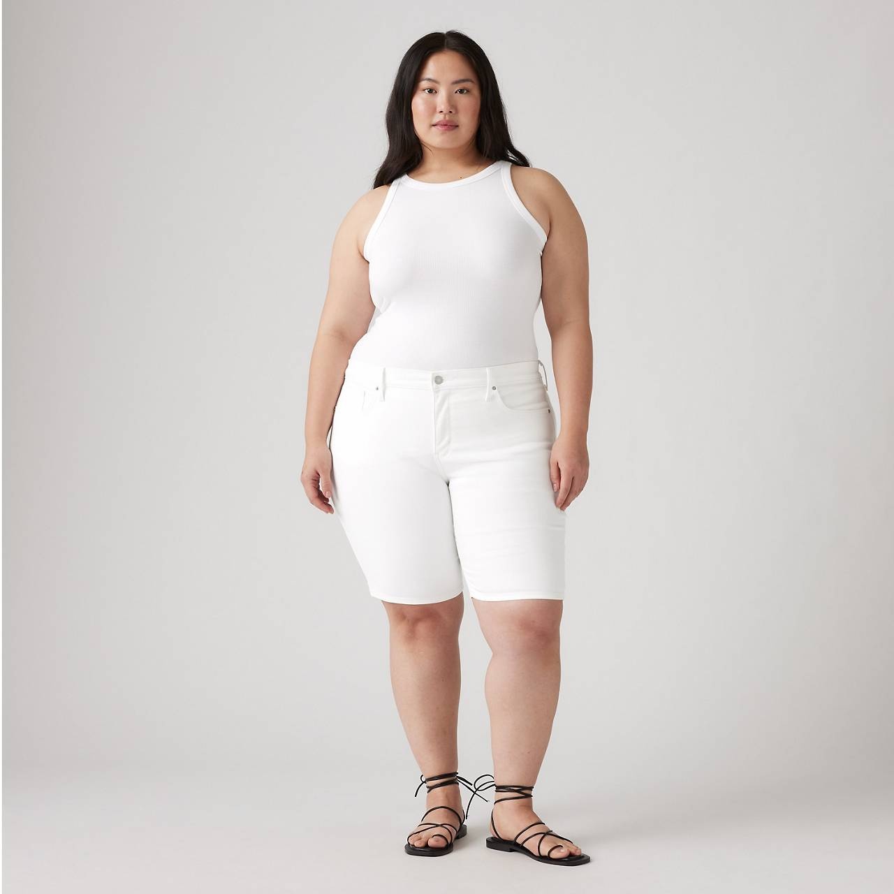 Our Shaping Bermuda Shorts were designed with a figure-framing fit and a hint of stretch for all-day comfort. Plus, it was designed with a built-in tummy panel that flatters, smooths and supports. - A classic summer style with a frame-flattering silhouette - Specially constructed to flatter your curves - Features stretchy denim with the perfect amount of give - Designed with a built-in tummy panel that flatters, smooths and supports Style # 001VF0004 Color: Chalk White How it Fits - Mid rise: 11.25" - Inseam: 10",Leg opening: 24 7/8",Measurements based on size 18 waist Composition & Care - 97% Cotton, 3% Elastane - Denim - Stretch - Zip fly - 5-pocket styling - Wash your jeans once every 10 wears at most; this increases their lifespan and saves natural resources.Machine wash cold, Do not bleach, Tumble dry medium, Warm iron if needed, Dry cleaning possible, Wash inside out with like colors - Made in Cambodia