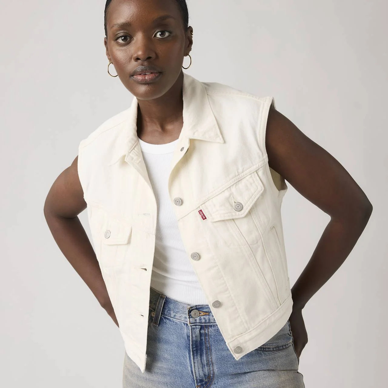 Our iconic Shrunken '90s Trucker Jacket gets a vest update. You'd be hard-pressed to find a vest with an easier shape, more versatile weight or inherent sense of cool. Bonus: This throwback cut features a pitched silhouette for a distinctly ‘90s feel. - An homage to our iconic Trucker Jacket - Cut with a cropped, relaxed fit - Constructed with a unique pitched '90s profile and two-flap pocket design - A blank canvas for self-expression that can be passed down for generations - Gets better over time with natural wear - We made this garment with soft, 100% cotton that gives it an easy, drapey fit Style # 001W20013 Color: Blank Impact - Medium Wash