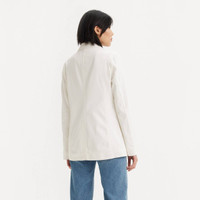 Single breasted cotton blazer with button closure and center back venting. Laydown collar and two lower vent pockets. Style # 595450044 Color: White Composition & Care - 100% Cotton - Machine wash cold with like colors, delicate cycle , use only non-chlorine bleach when needed, tumble dry low, cool iron if needed.