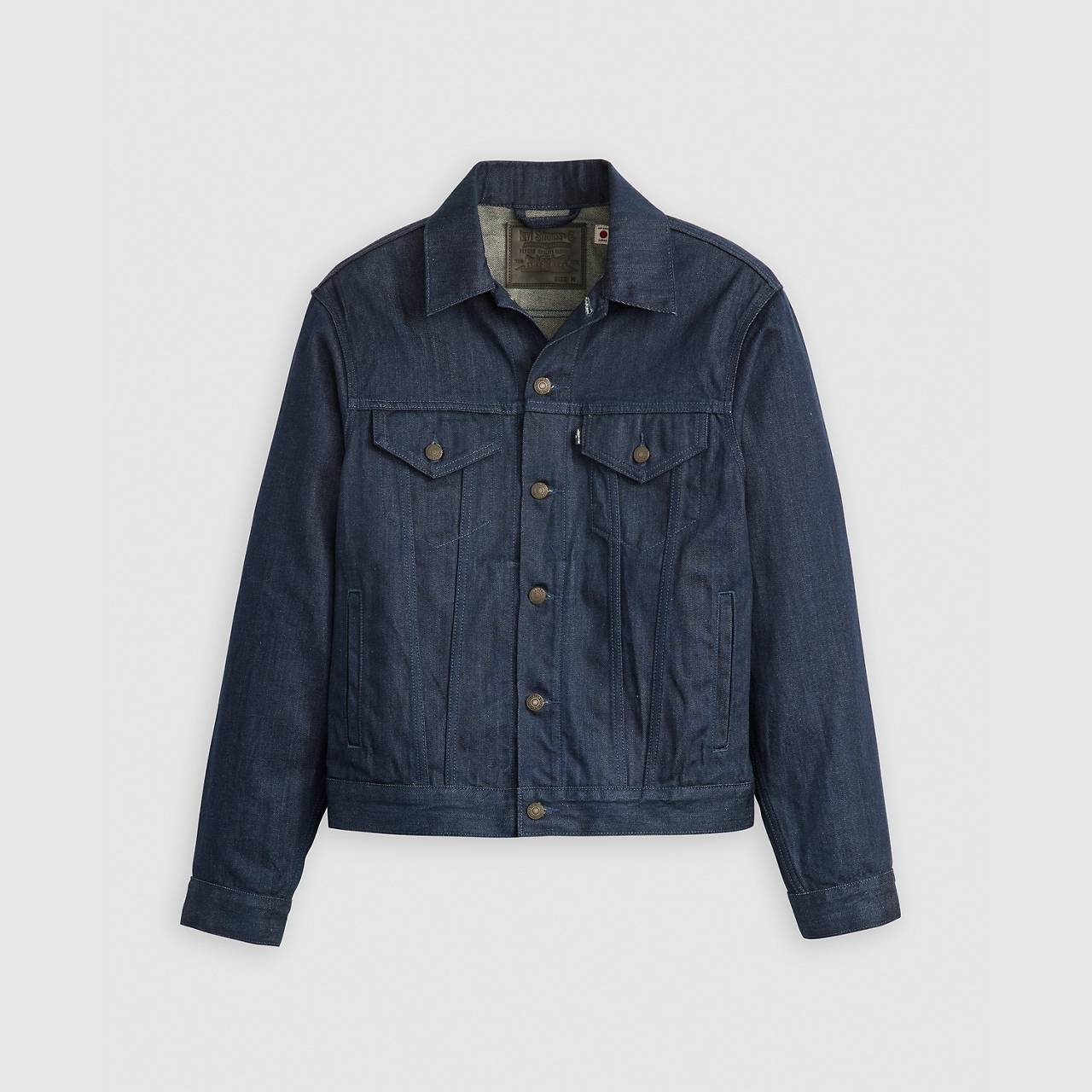 Levi's® Blue Tab™ is an elevated collection that infuses our iconic denim heritage with traditional craftsmanship. Expect thoughtful details, sharp tailoring and finishes that are rich with character. This is an entirely new shape of Blue. An emblem of the pioneering spirit, the Trucker Jacket is a Levi’s® original that’s made history. This rigid Type III Trucker Jacket is made with red and blue patching and repairing throughout the garment. - An elevated collection where time honored techniques meet modern silhouettes for a tailored look - The original jean jacket since 1967 - Levi’s® branded metal buttons and tapered “V” stitches make it instantly recognizable - Crafted with premium Japanese fabric Style # A58830003 Color: Deep Well - Dark Wash How it Fits - Standard fit Composition & Care - 100% Cotton - Denim - Button-down collar - Long sleeves - Machine wash cold, Do not bleach, Tumble dry medium, Hot iron if needed, Dry cleaning possible, Wash inside out with like colors - Made in China