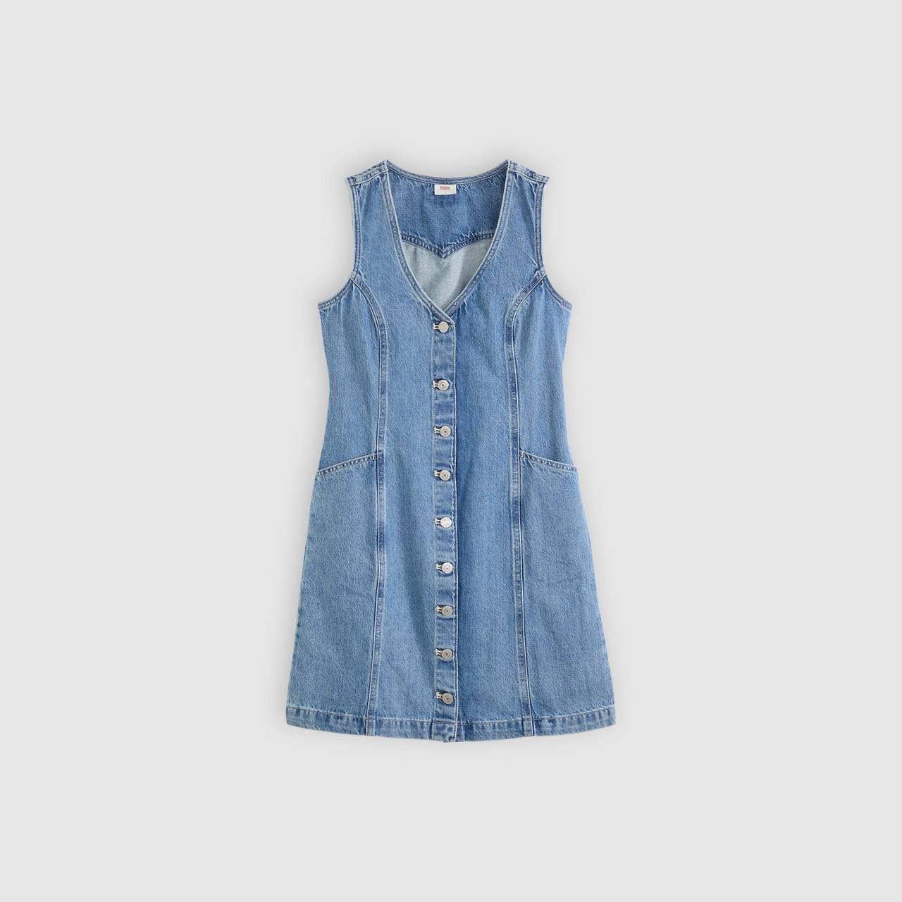 Sleek with a little bit of structure, our Vianna Vest Dress is an easy grab-and-throw-on. We designed it with a V-neckline, a classic button-up front and an easy above-the-knee length. - An easy grab-and-throw-on dress - Cut with a form-flattering fit - With a classic button-up front Style # 001WL0002 Color: Special Showing - Medium Wash How it Fits - Slim fit Composition & Care - 100% Cotton - Denim - V-neck - Sleeveless - Imported