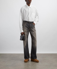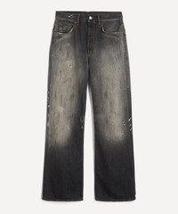 DETAILS 2021M jeans Rigid cotton denim Regular fit Mid-waist Wide, straight leg Long length 5-pocket construction Button fly Belt loops Logo-embossed jacron patch Manual dirt and paint mark details Designer wash: Black Trafalgar SIZE & FIT Model is 188cm/6'2"; Chest: 92cm; Waist: 80cm and wears a size 32/32 COMPOSITION & CARE 100% Cotton Cold machine wash