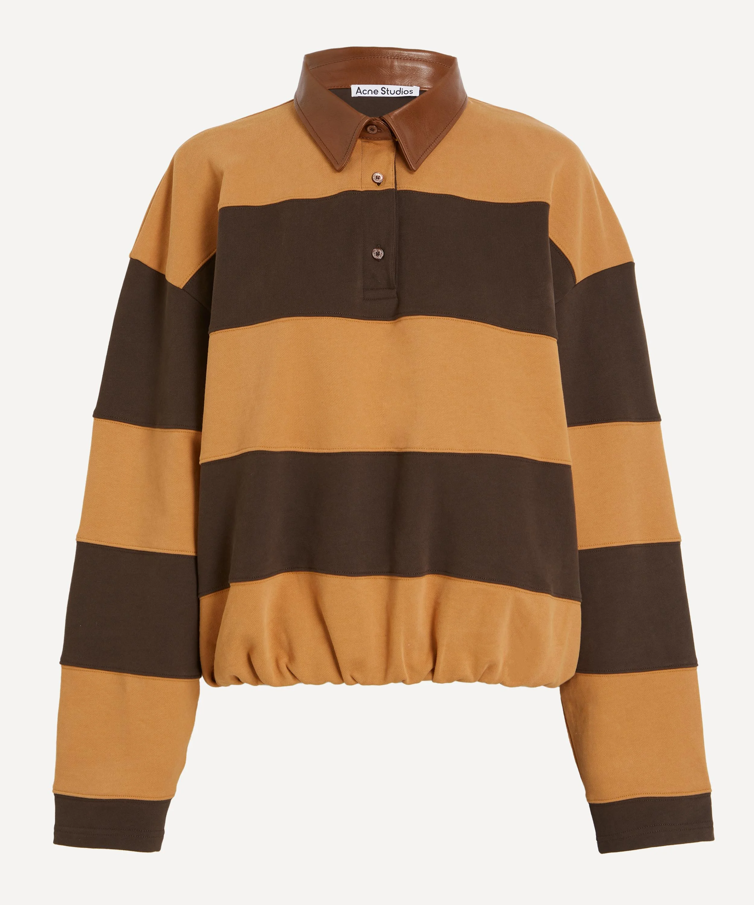 DETAILS Folio Sweatshirt Cotton-jersey Leather-trimmed polo collar Long sleeves Striped design Half placket Gathered hem SIZE & FIT Model is 175cm/5'9"; Chest: 76cm; Waist: 58cm; Hip: 90cm COMPOSITION & CARE 100% Cotton Trim: 100% Leather Specialist clean