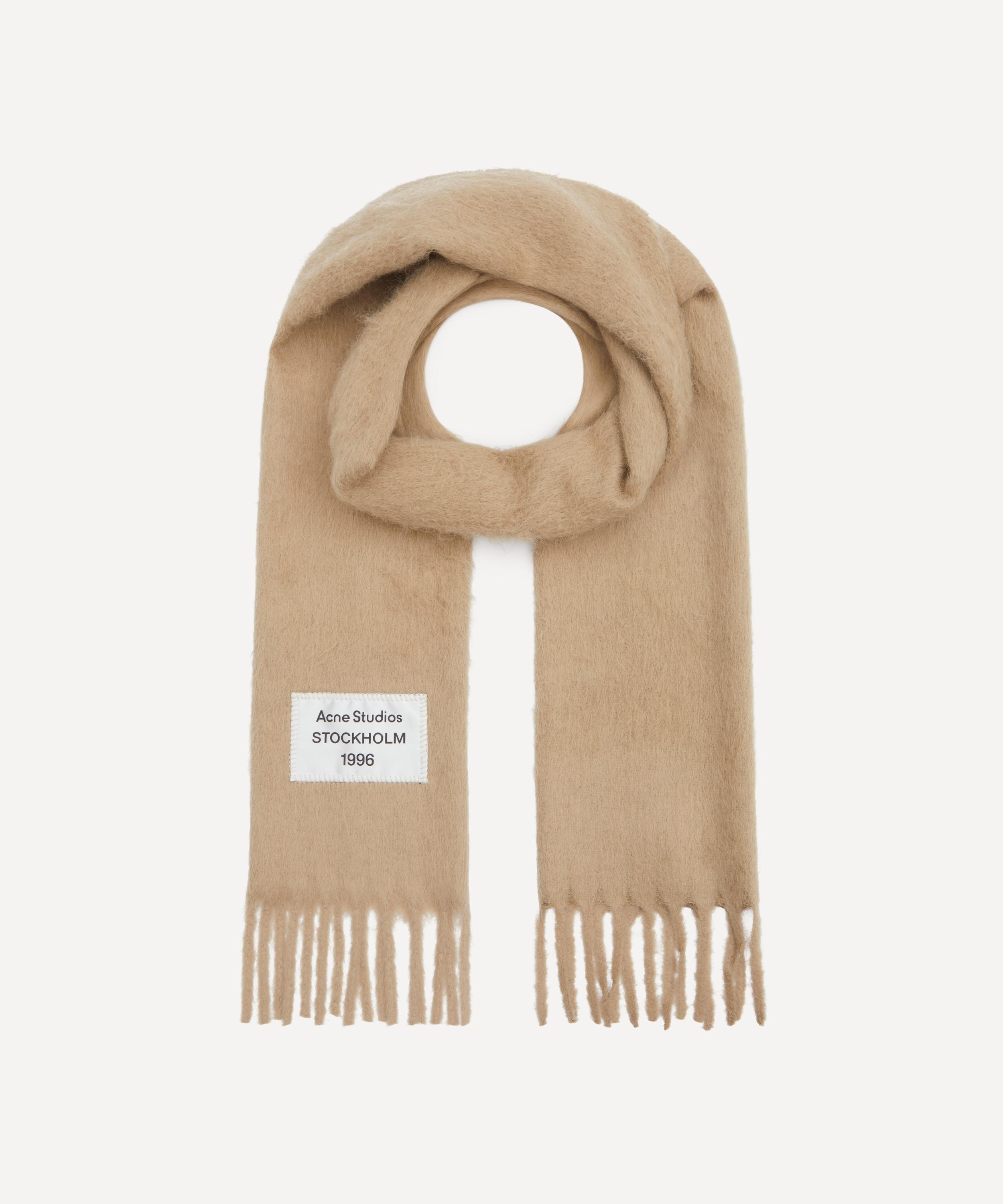 DETAILS Scarf Alpaca blend Soft and hairy texture Fringed ends Acne Studios logo label Made in Italy Dry clean only COMPOSITION & SIZE 80% Alpaca; 20% Nylon L: 205cm, W: 30cm