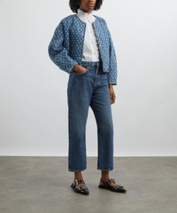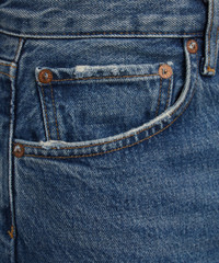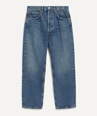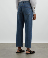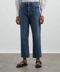 DETAILS 90s Crop Mid-Rise Straight jeans Regenerative Cotton Loose fit Straight leg Rise: 12 1/2" In seam: 26” Leg opening: 15 3/4" Button fly 5-pockets style Subtle whiskering detail Designer wash: Essence SIZE & FIT Model is 175.5cm/5'9"; Chest: 81.5cm; Waist: 64.5cm; Hip: 89cm and wears a size 26 COMPOSITION & CARE 67% Regenerative Cotton, 22% Lyocell, 11% Cotton Machine wash cold, inside-out with similar colours