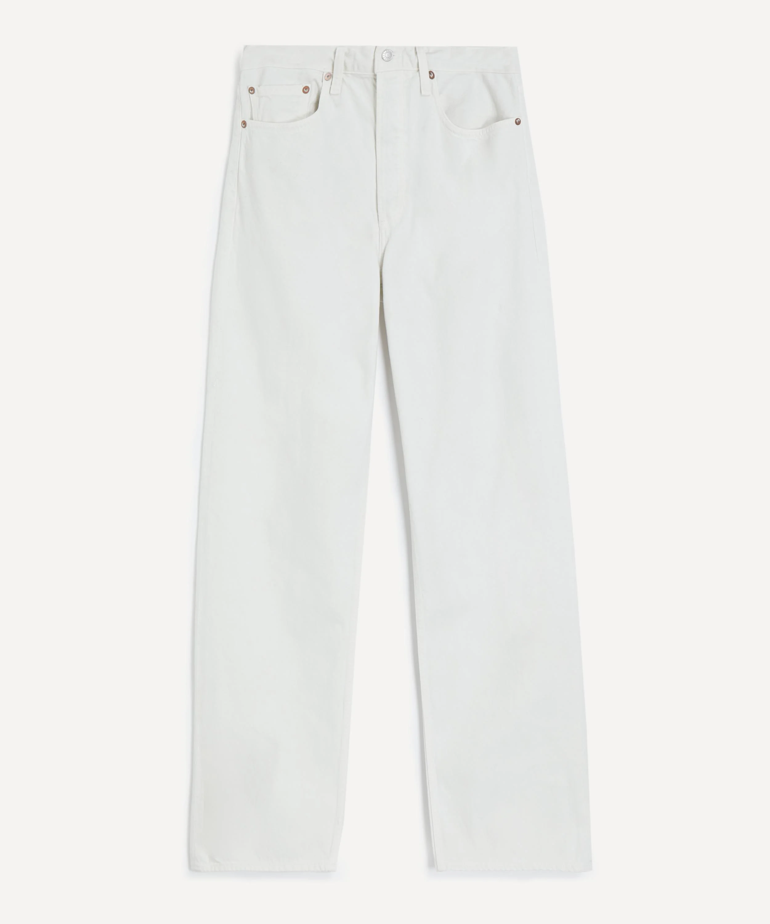 DETAILS Arc 32” jeans Rigid, non-stretch cotton denim Mid-rise Relaxed fit Wide-leg Long-length Rise: 11” Inseam: 32” Leg opening: 19 1/2” Button fly 5-pocket construction Designer wash: Chalk White SIZE & FIT Model is 175cm/5'9"; Chest: 83cm; Waist: 27cm; Hip: 38.5cm and wears a size 27 COMPOSITION & CARE 100% Cotton Machine wash cold inside-out with similar colours. Do not bleach. Tumble dry low