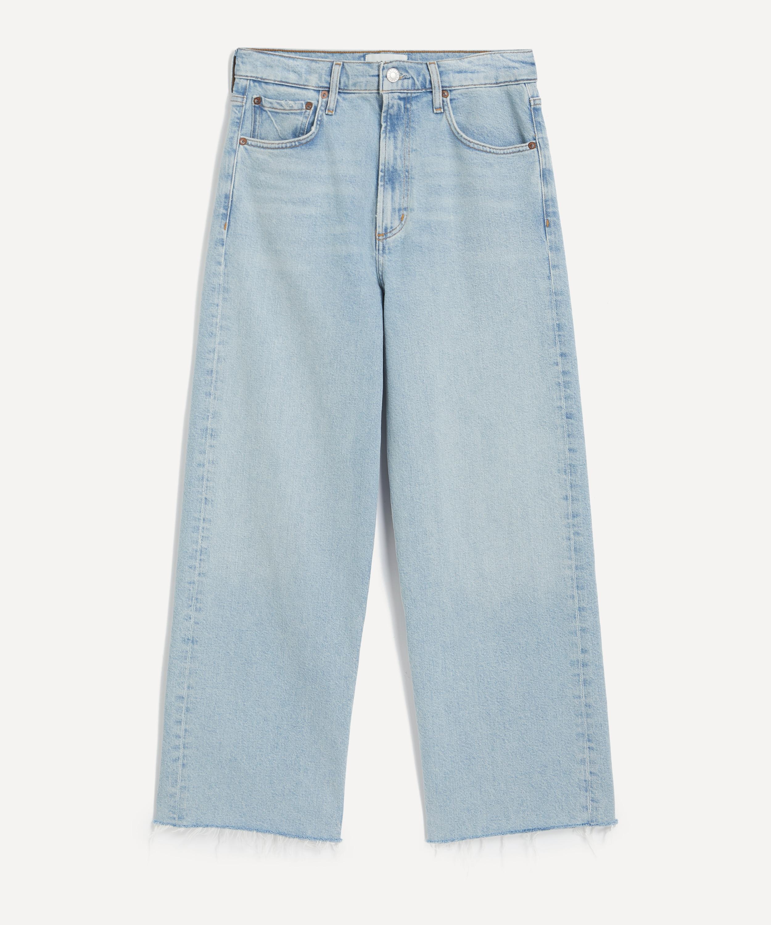 DETAILS Ren jeans Cotton stretch denim High-rise Wide-leg Cropped length Rise: 12 ¼” Inseam: 27 ½” Leg opening: 19 ½” Button fly 5-pocket construction Fading and whiskering details Designer wash: Beam SIZE & FIT 179cm/5'10.5"; Chest: 81cm; Waist: 64cm; Hip: 89cm and wears a size 27 COMPOSITION & CARE 99% Cotton; 1% Elastane Machine wash cold inside-out with similar colours. Do not bleach. Tumble dry low