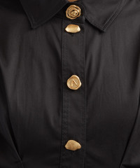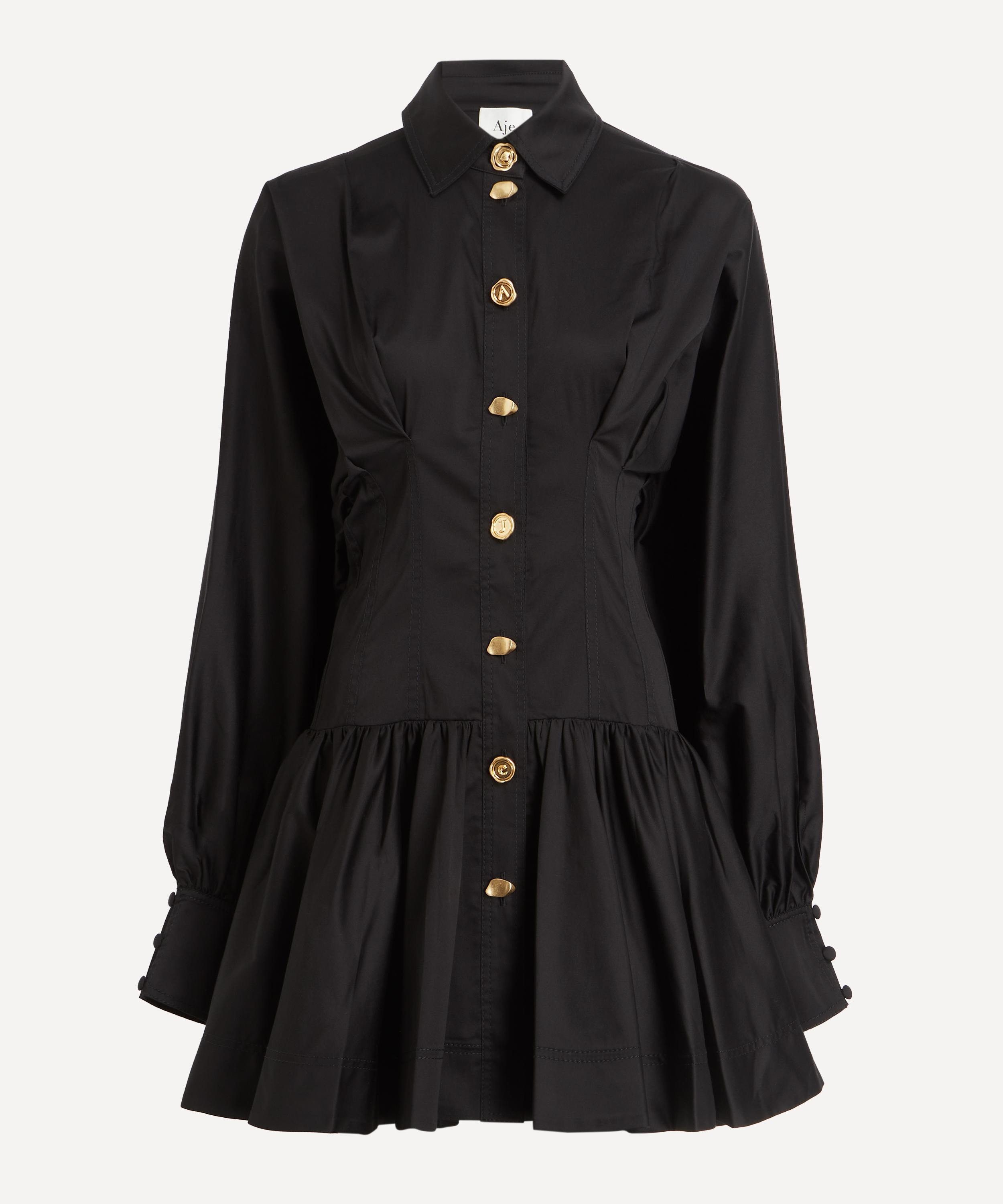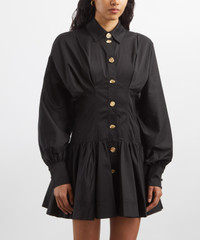 DETAILS Fitted shirt dress Mini length Fit-and-flare silhouette Shirt collar Fitted bodice with shaping panel seams Front placket with mismatched gold buttons Bishop sleeves Buttoned cuffs Flared mini skirt SIZE & FIT Model is 178cm/5'10"; Chest: 79cm; Waist: 62cm; Hip: 88cm and wears a size 8 COMPOSITION & CARE 97% Cotton; 3% Elastane Delicate hand wash