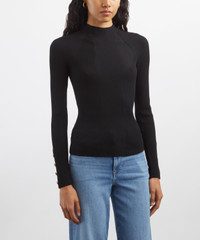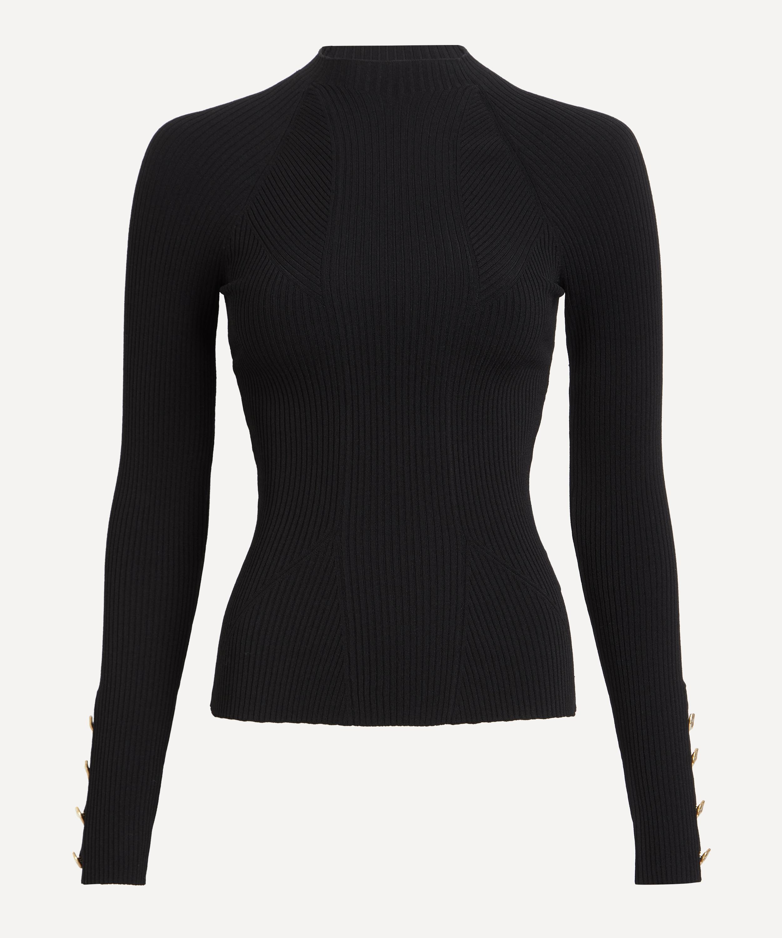 DETAILS Rib-knit top Slim fit Long sleeves Buttoned cuffs Hammered gold buttons SIZE & FIT Model is 178cm/5'10"; Chest: 79cm; Waist: 62cm; Hip: 88cm and wears a size 8 COMPOSITION & CARE 77% Rayon; 23% Nylon Dry clean