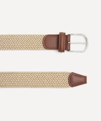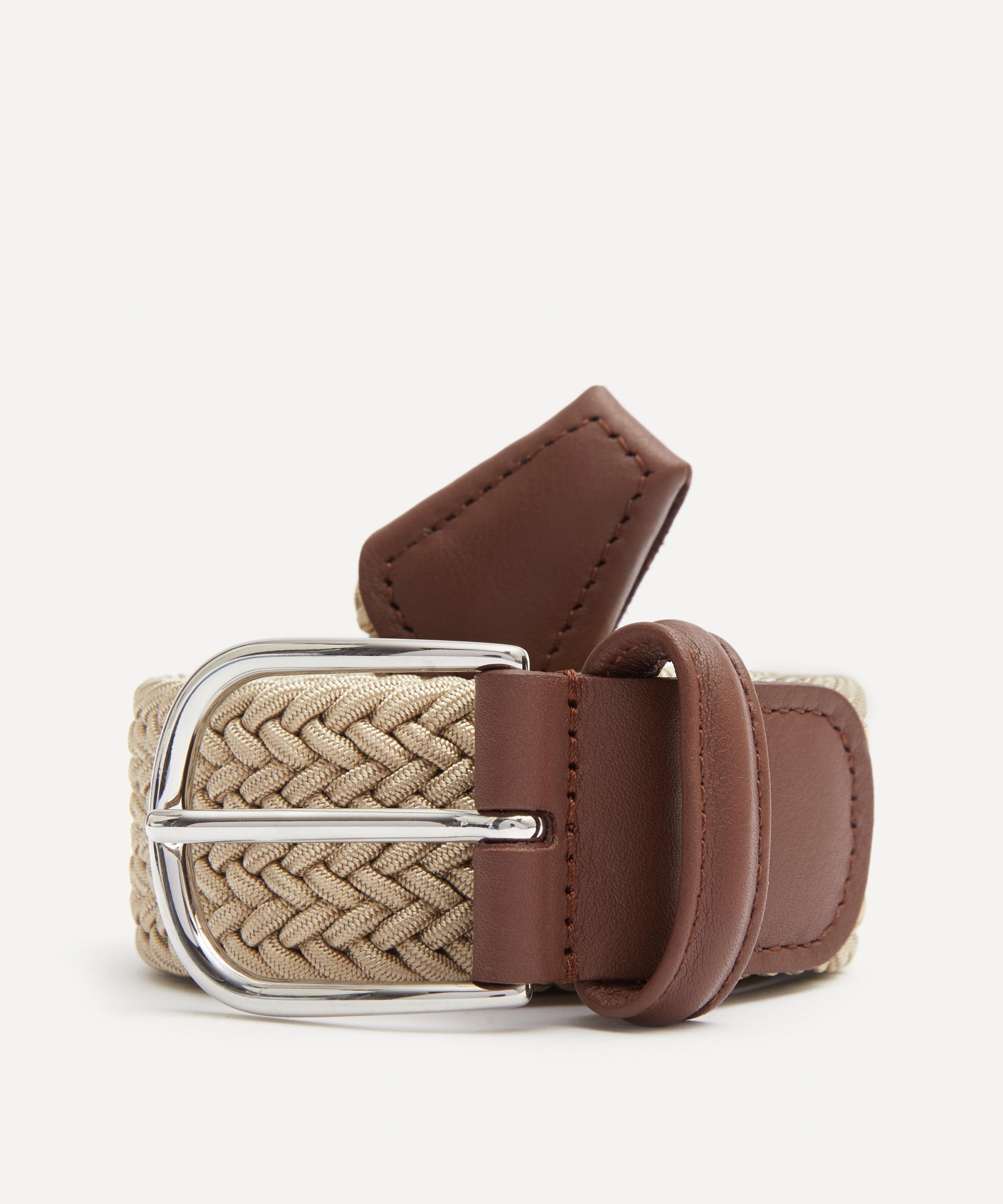 DETAILS Woven elastic belt Leather trim Polished metal buckle Handmade in Italy COMPOSITION & SIZE 100% Textile; Leather Trim W: 3.5cm