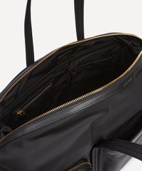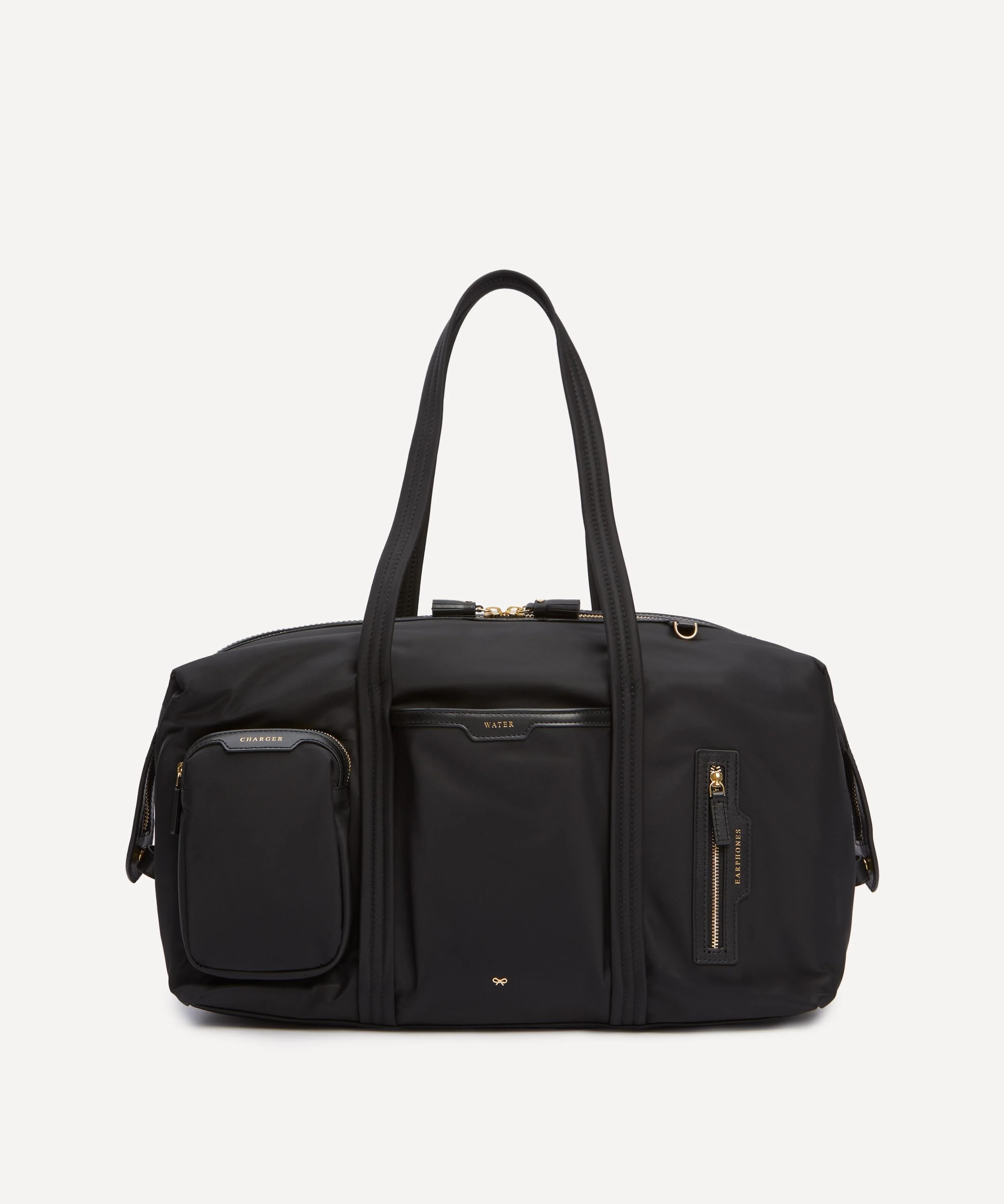 DETAILS In-Flight bag Nylon Leather trims Gold-tone hardware Zip closure Labelled compartments Internal slip pockets Removable PVC liquids pouch Luggage trolley sleeve Keys chain COMPOSITION & SIZE Nylon; Leather H: 19cm, W: 40cm, D: 22cm