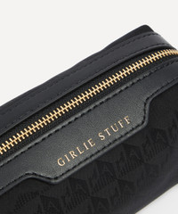 DETAILS Girlie Stuff pouch Logo-jacquard nylon Patent leather trims Gold-tone hardware Zip closure Main compartment Gold-tone labels Tasselled zip pulls Gold-tone AH bow COMPOSITION & SIZE 100% Nylon; 100% Leather H: 9cm, W: 15cm, D: 5.5cm