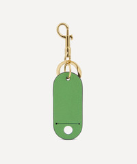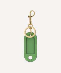DETAILS Leather luggage tag Plastic pane for personalisation Gold-tone keyring and lobster clasp Grass Green colourway AH branding to the keyring COMPOSITION & SIZE Leather D: 0.5cm, W: 6cm, H: 14cm