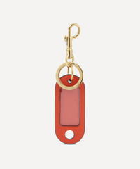 DETAILS Leather luggage tag Plastic pane for personalisation Gold-tone keyring and lobster clasp Burnt Sienna colourway AH branding to the keyring COMPOSITION & SIZE Leather D: 0.5cm, W: 6cm, H: 14cm