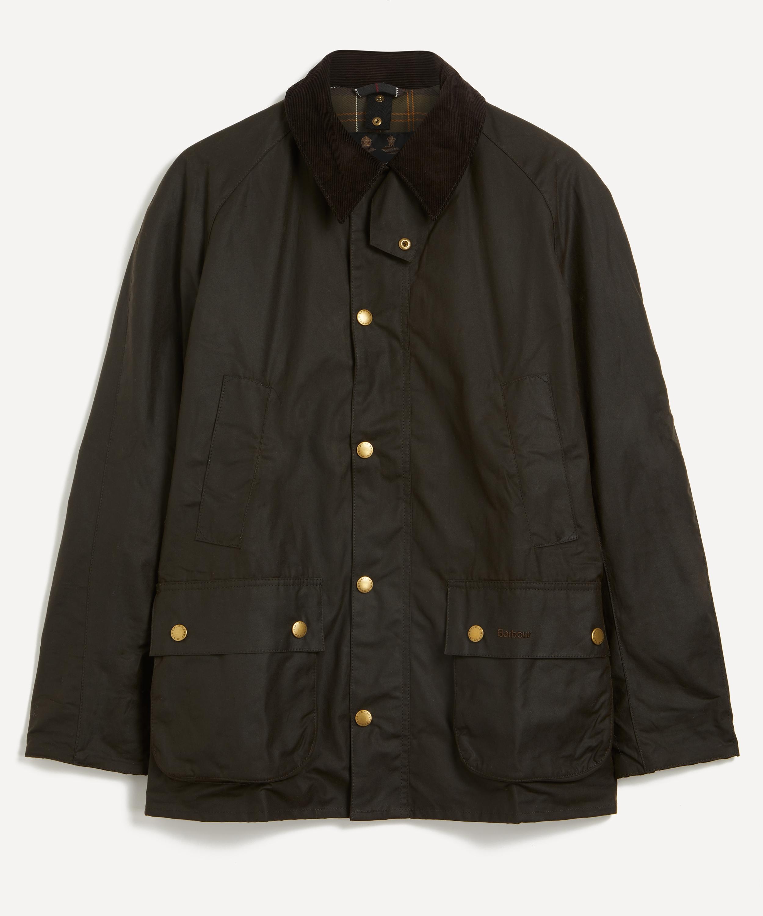 DETAILS Ashby jacket Waxed cotton Regular fit Matte finish Windproof press stud and zip closure Corduroy collar Check lining Slanted side pockets Two large bellows pockets Embroidered branding to one pocket flap SIZE & FIT Model is 191cm/6'3"; Chest: 93cm; Waist: 74cm and wears a size M COMPOSITION & CARE 100% Waxed Cotton Inner: 100% Cotton Lining: 78% Cotton; 22% Polyester Sponge clean only