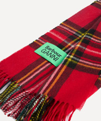 DETAILS Tartan Scarf Barbour x GANNI collaboration Pure wool Fringed ends Barbour x GANNI co-branded silicone patch One size COMPOSITION & CARE 100% Wool Dry clean