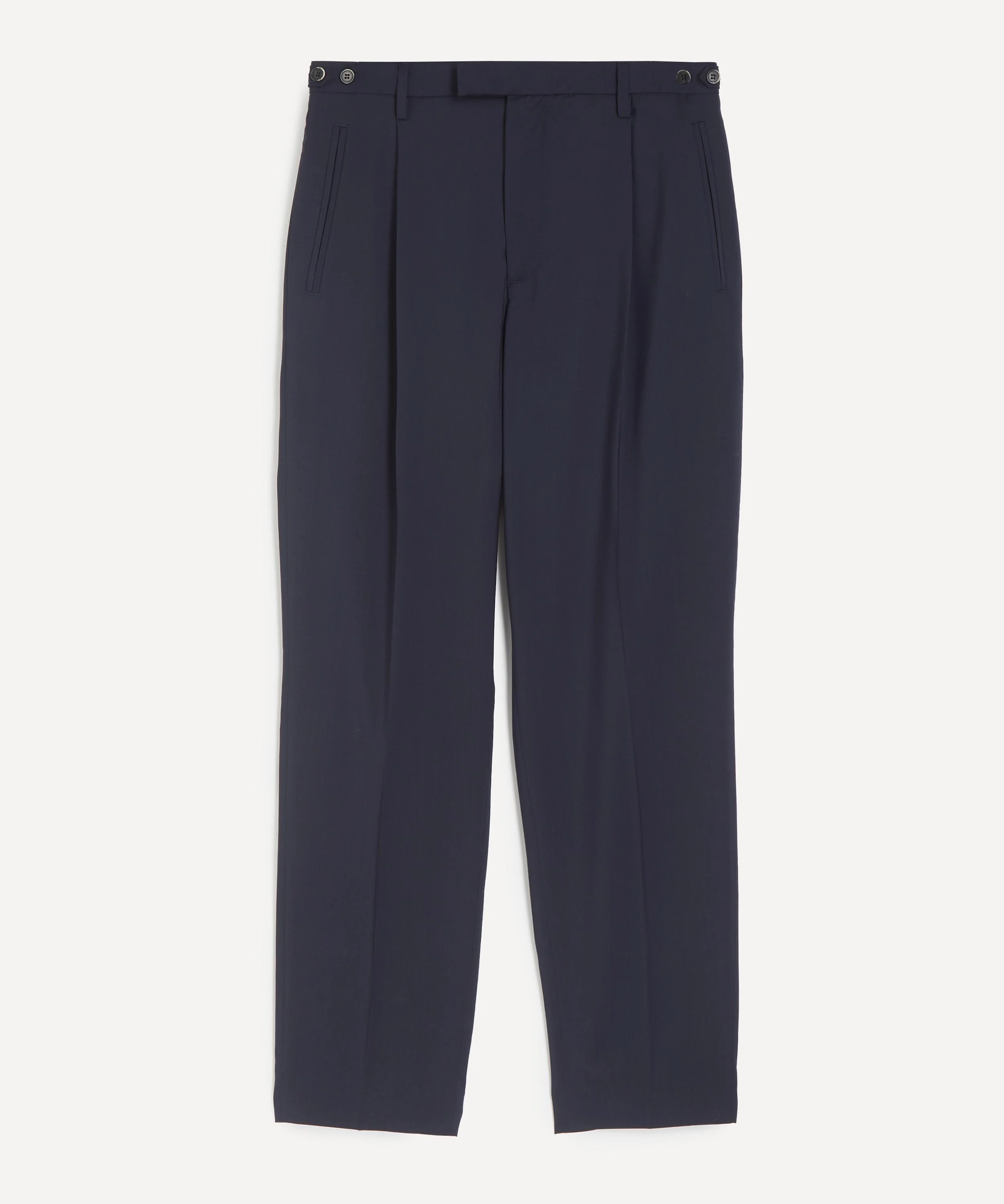 DETAILS Tropical wool trousers Regular fit Mid-rise Extended waistband Belt loops Jetted side pockets Rear flap pockets Single pleat Made in Italy SIZE & FIT Model is 188cm/6'2"; Chest: 89cm; Waist: 71cm and wears a size 38/48 COMPOSITION & CARE 100% Wool Dry clean