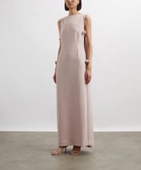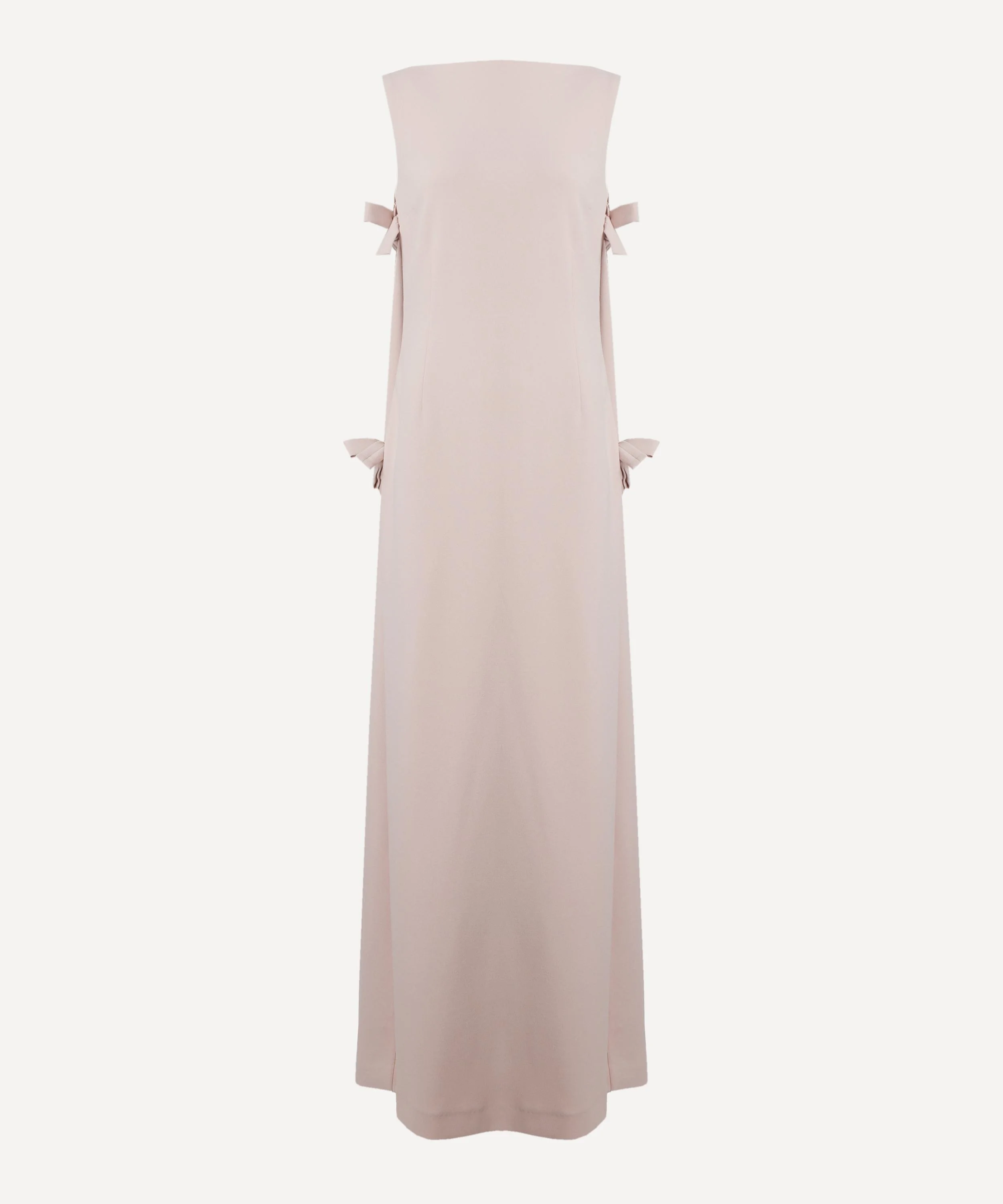 DETAILS Crepe de chine gown Elongated column silhouette Longline Sleeveless Boat neckline Low-cut back Side bows Back slit Concealed zip fastening SIZE & FIT Model is 178.5cm/5'10" ; Chest: 77.5cm; Waist: 58.5cm; Hips: 86cm and wears a size 8 COMPOSITION & CARE 95% Polyester; 5% Polyurethane Dry clean