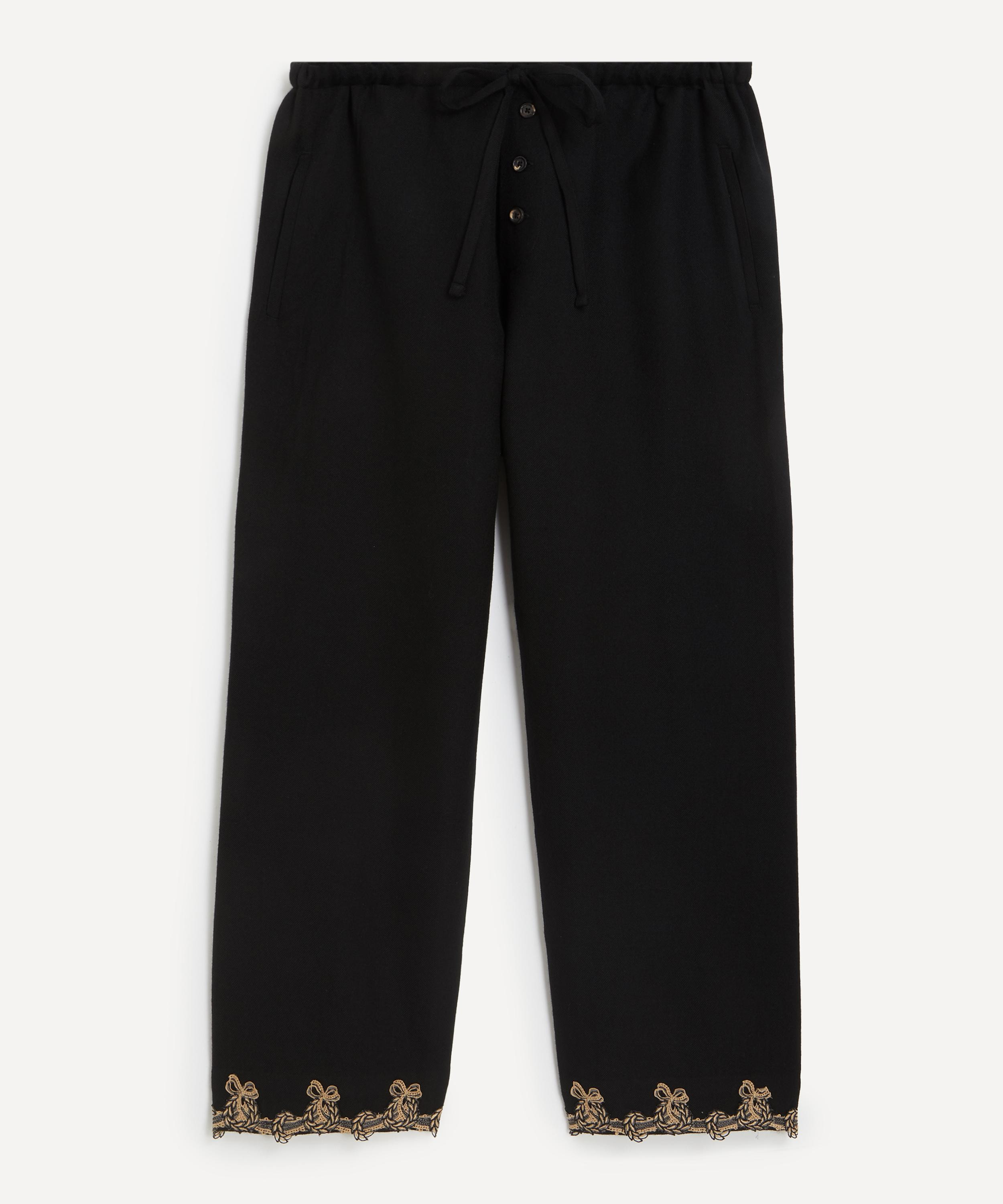 DETAILS Cotton pyjama-style trousers Relaxed fit Drawstring waistband Side pockets Rear patch pocket Wreath and garland trim SIZE & FIT Model is 188cm/6'1"; Chest: 89cm; Waist:75cm and wears a size M COMPOSITION & CARE 100% Cotton Dry clean
