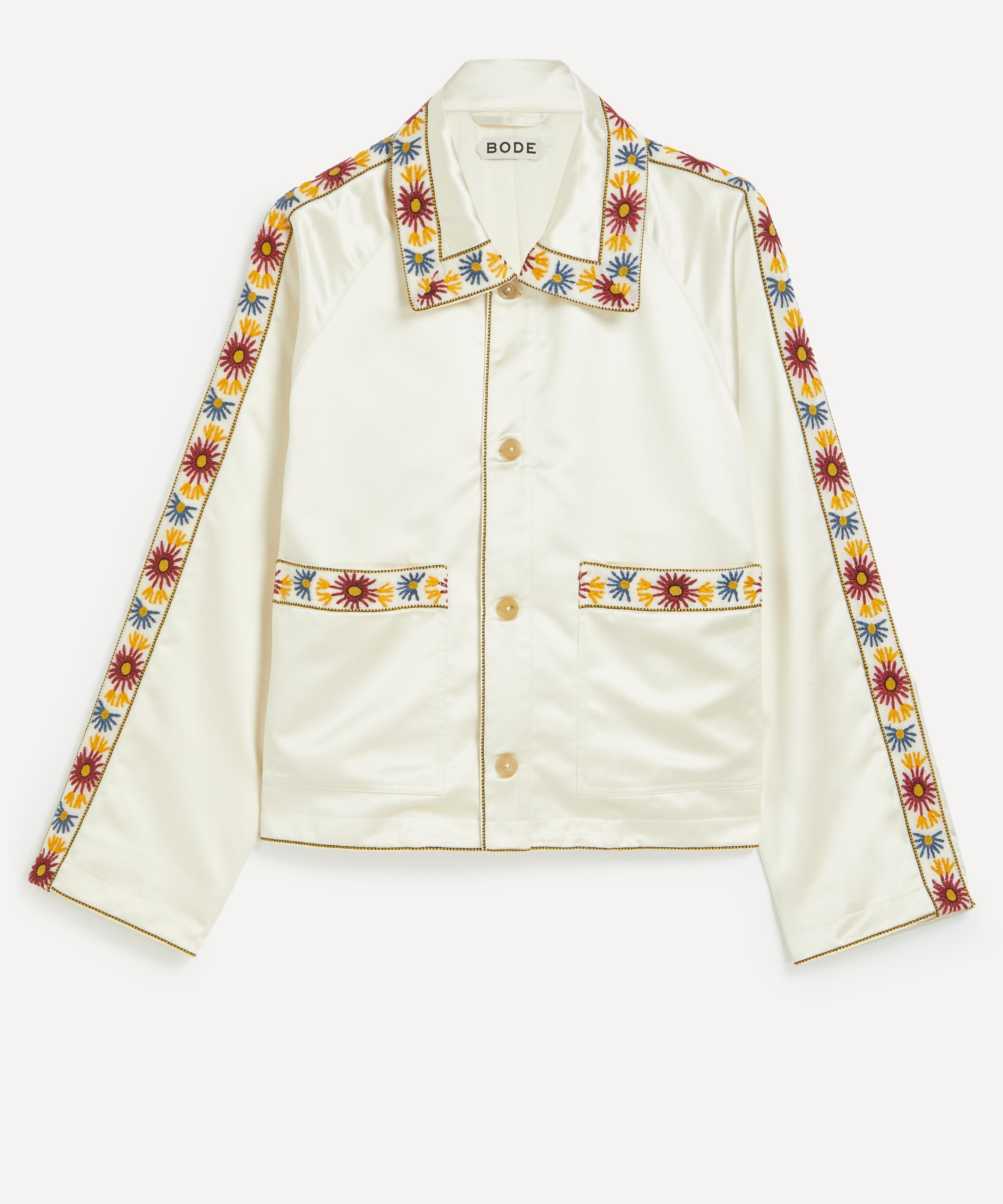 DETAILS Cotton-blend jacket Regular fit Raglan sleeves Spread collar Front button fastening Two patch pockets Floral applique trim Made in India Model is 183cm/6'0"; Chest: 94cm; Waist: 77cm and wears a size M COMPOSITION & CARE 54% Viscose; 46% Cotton Dry clean