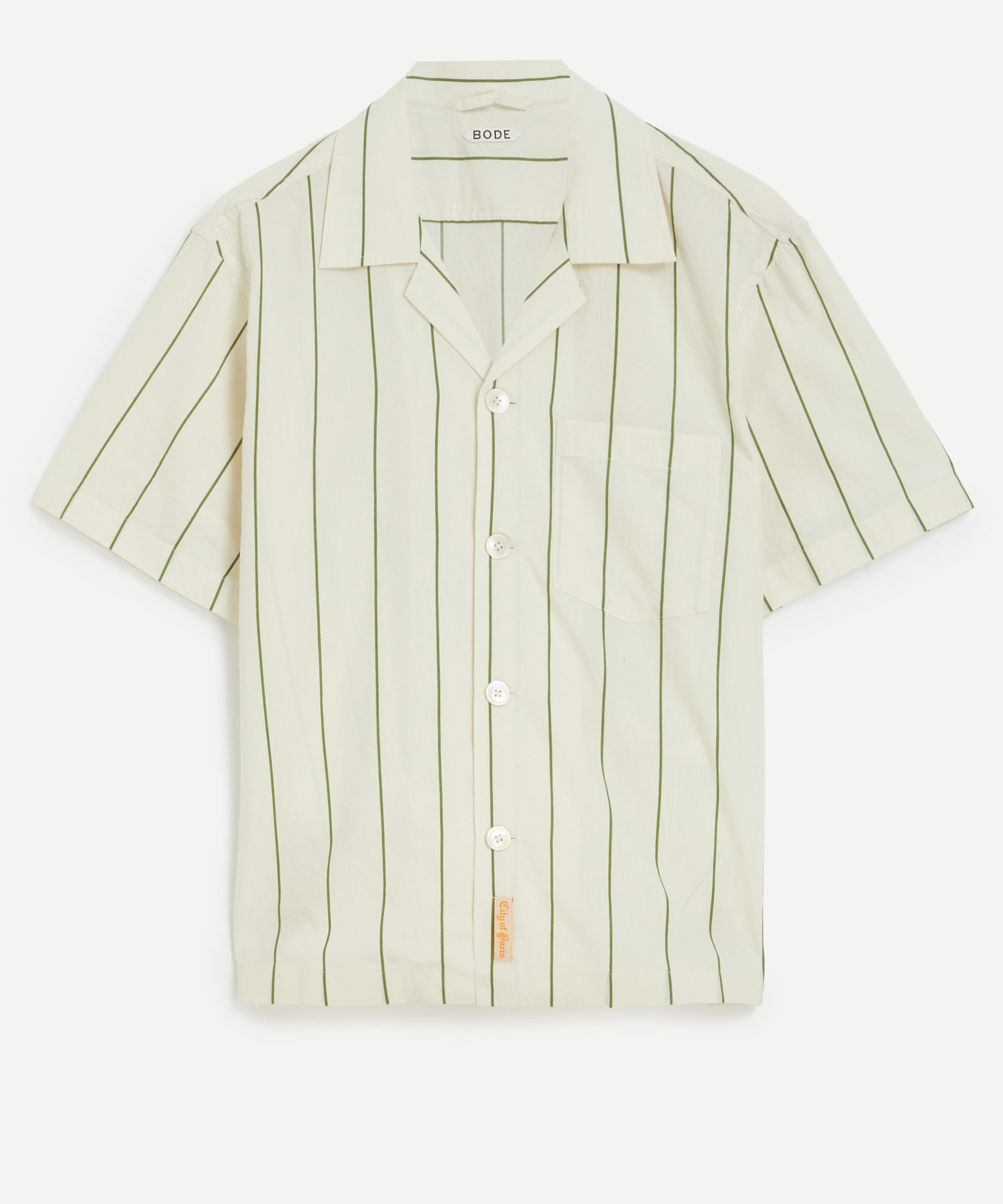 DETAILS Striped cotton shirt Boxy fit Short sleeves Camp collar Front button fastening Chest pocket SIZE & FIT Model is 188cm/6'1"; Chest: 89cm; Waist:75cm and wears a size M COMPOSITION & CARE 100% Cotton Dry clean