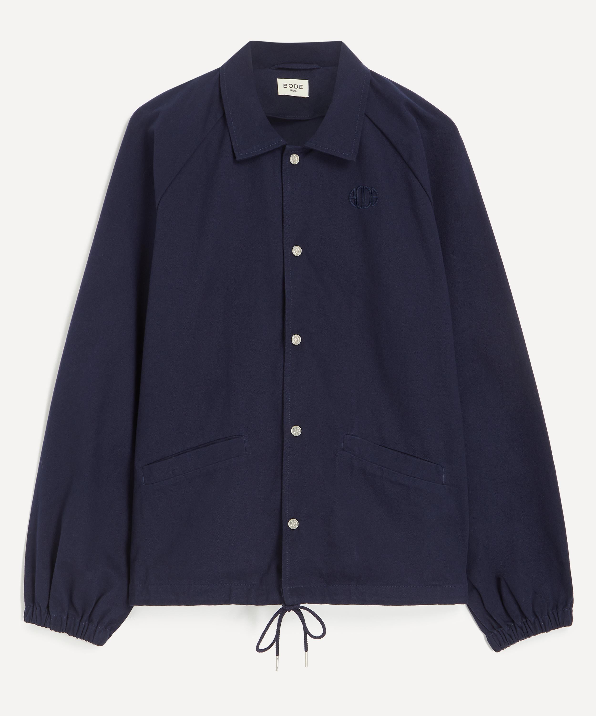 DETAILS Cotton twill jacket Relaxed fit Spread collar Stud fastening Horseshoe snap buttons Bode embroidered monogram SIZE & FIT Model is 188cm/6'2"; Chest: 92cm; Waist: 80cm and wears a size M COMPOSITION & CARE 100% Cotton Dry clean