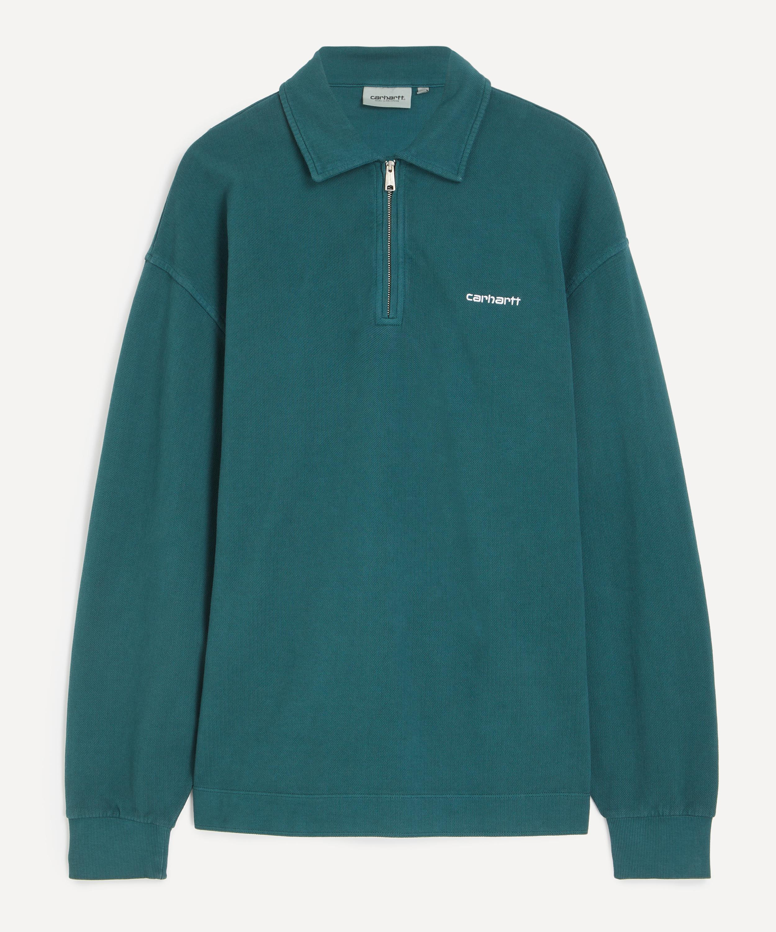 DETAILS Cotton sweatshirt Zipped half-placket Boxy fit Lower side slits Embroidered script logos Long sleeves SIZE & FIT Model is 186cm/6'1"; Chest: 92cm; Waist: 71cm COMPOSITION & CARE 100% Cotton. Machine wash