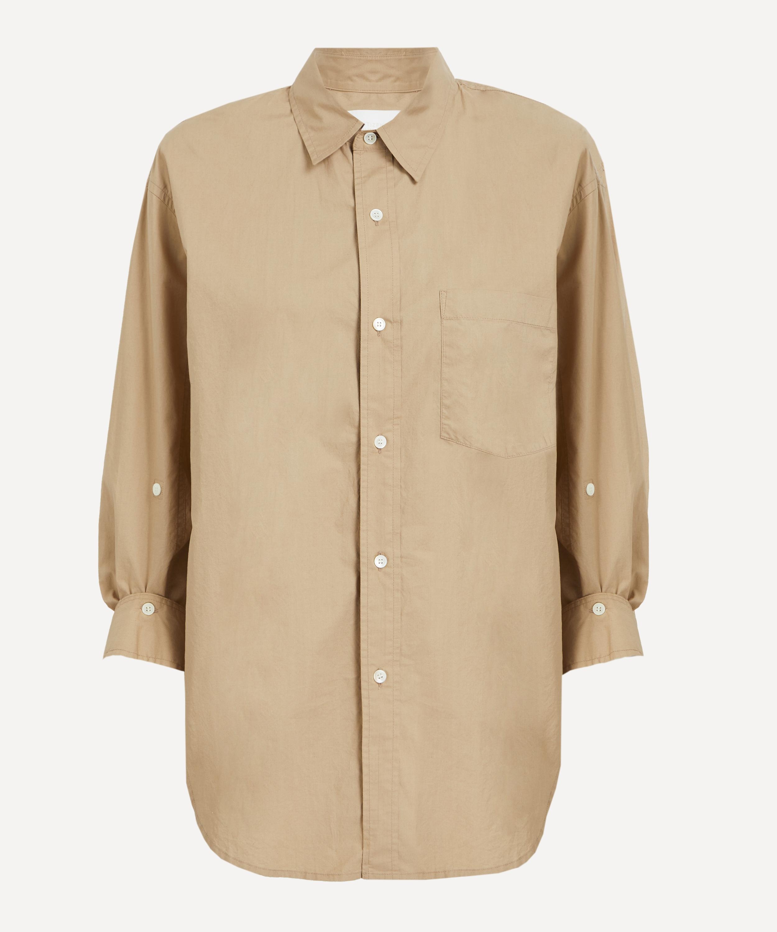 DETAILS Cotton shirt Oversized fit Dropped shoulders Long sleeves with buttoned cuffs Classic collar Front button fastening Chest pocket High-low hem SIZE & FIT 179cm/5'10.5"; Chest: 81cm; Waist: 64cm; Hip: 89cm and wears a size S COMPOSITION & CARE 100% Cotton Machine wash cold inside-out with similar colours. Do not bleach. Tumble dry low