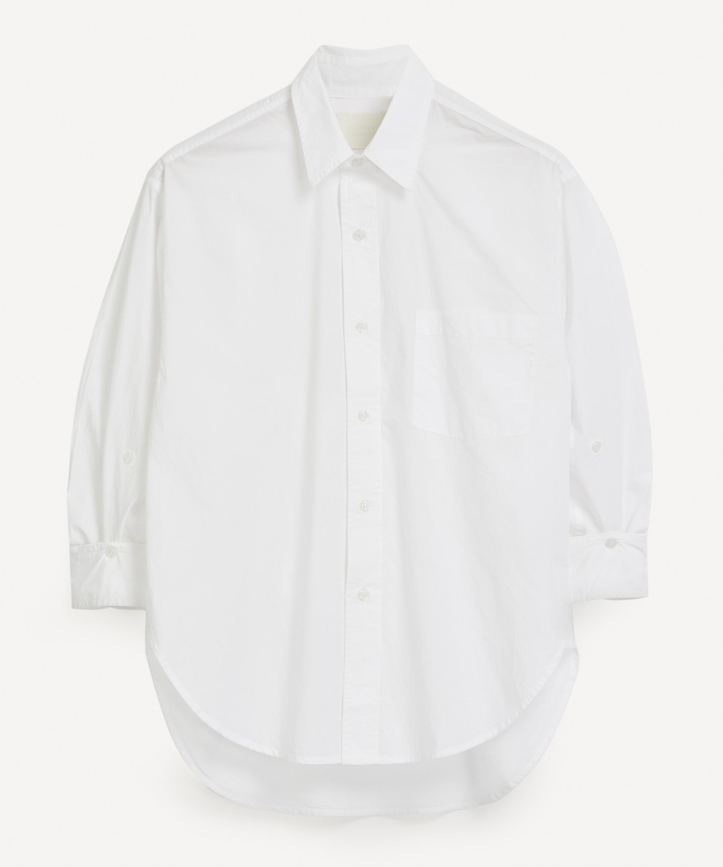 DETAILS Cotton shirt Oversized fit Dropped shoulders High-low hem Classic collar Buttoned closure and cuffs Single chest patch-pocket SIZE & FIT Model is 180cm/5ft 11"; Chest: 79cm; Waist: 62cm; Hip: 89cm and wears a size S COMPOSITION & CARE 100% Cotton Machine wash inside-out