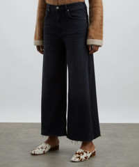DETAILS Lyra jeans Stretch cotton denim High-rise Relaxed, wide leg Cropped length Rise: 11 1/2” Inseam: 27” Leg opening: 24” Zip fly Belt loops 5-pocket construction Washed out black denim Light fading and whiskering detail Designer wash: Medallion SIZE & FIT Model is 175.5cm/5'9"; Chest: 81.5cm; Waist: 64.5cm; Hip: 89cm and wears a size 27 COMPOSITION & CARE 71% Cotton; 23% Modal; 4% Elastomultiester; 2% Elastane Machine wash cold inside out with similar colours