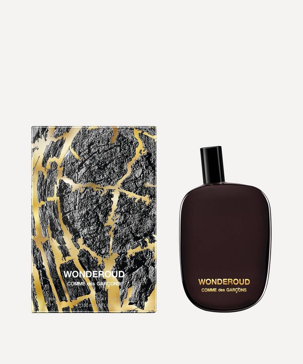 Editor's Notes Comme des Garçons Wonderoud Eau de Parfum perfume is full of luscious woody scents from oud to sandalwood. Wonderoud has a powerful and rich character with notes of patchouli and vetiver wood creating a fresh and earthy finish. An oriental, woody fragrance, this is for the woman who craves adventure. Features 100ml Notes: Sandalwood, Vetiver, Guaiac Wood HOW TO USE Spritz as required, applying to pulse points behind your ear, at the bottom of your throat, on your wrist, inside your elbow, and behind your knee.