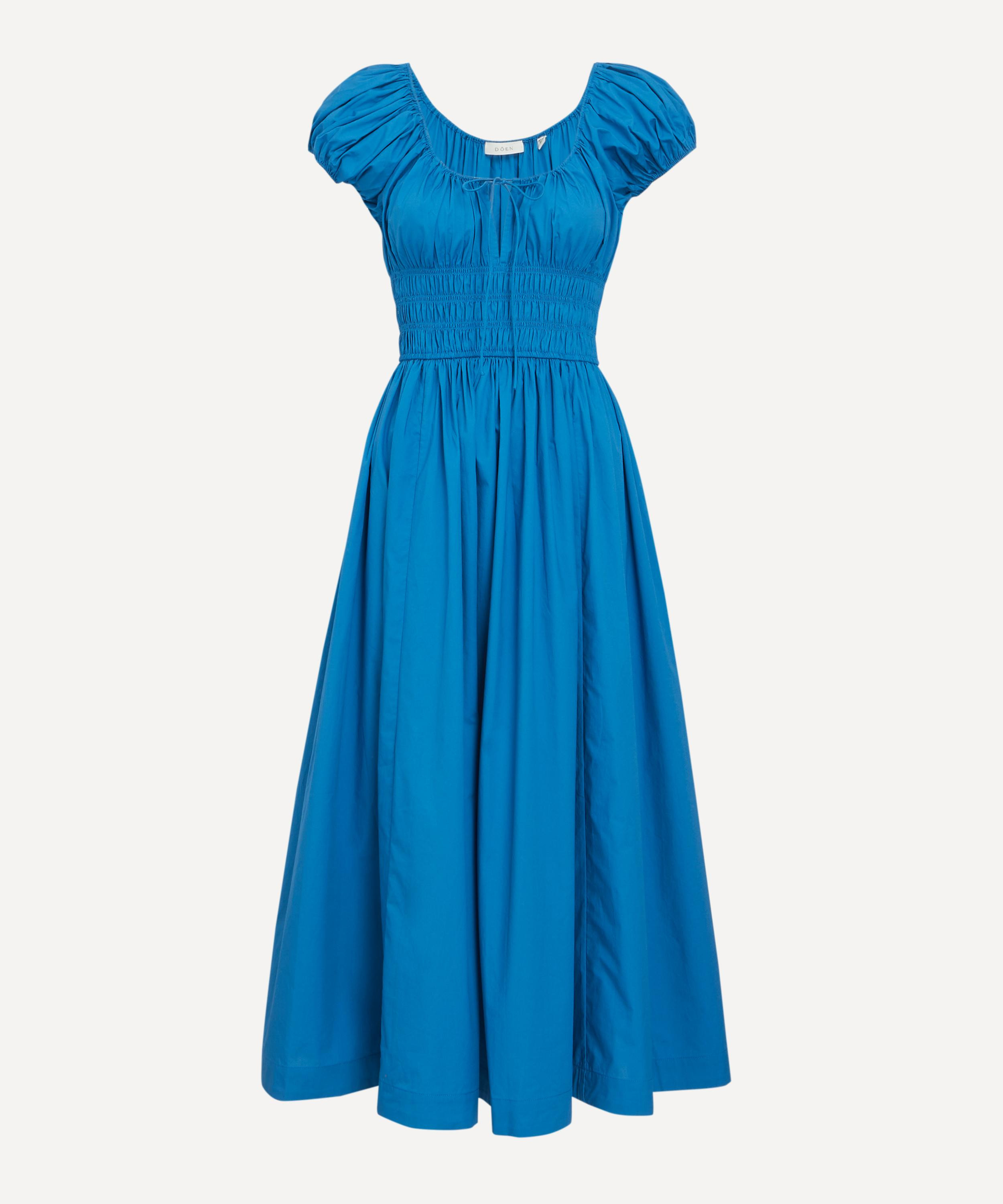 Quinn tie-detailed shirred cotton-poplin midi dress Cobalt blue