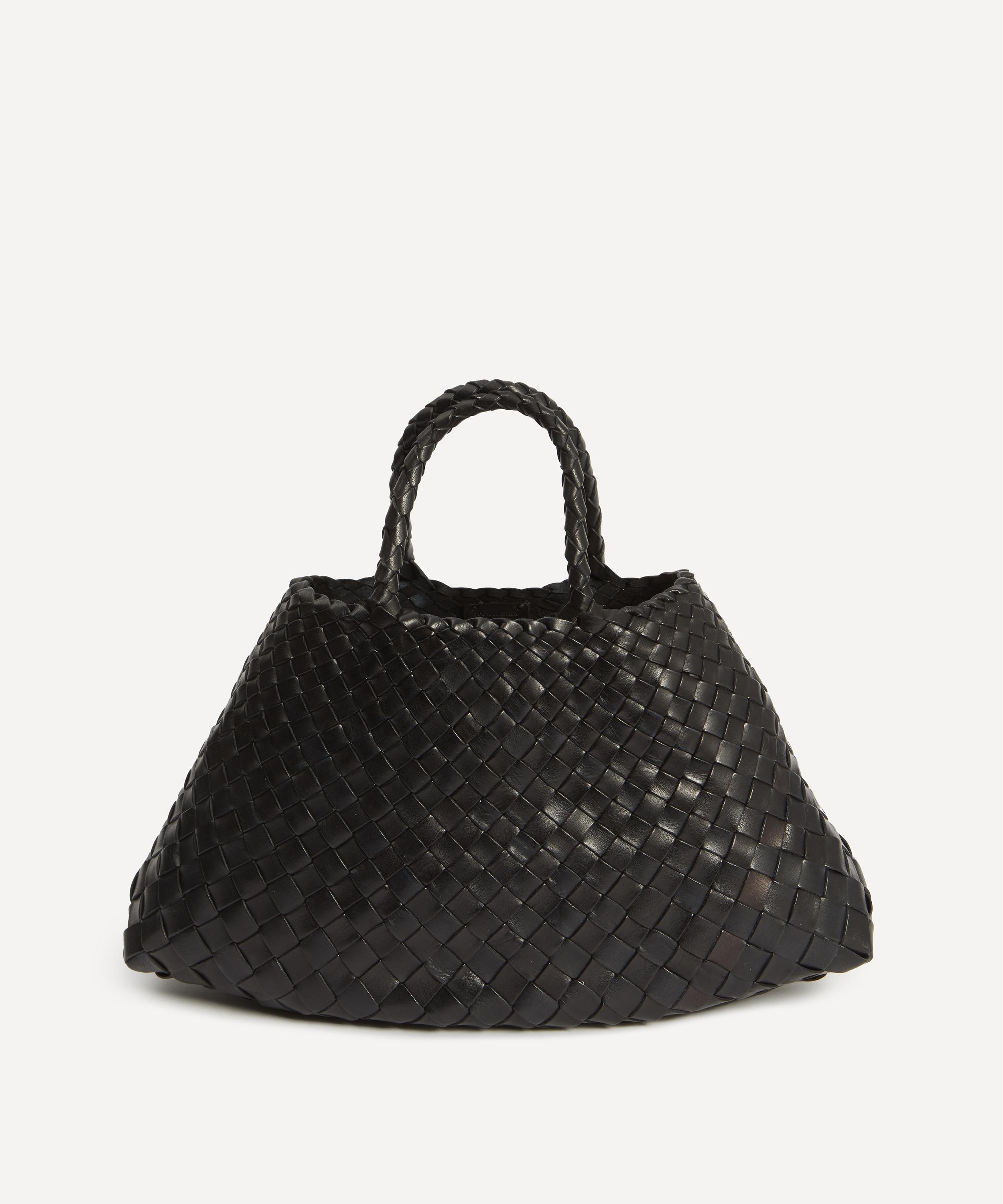 DETAILS Small tote bag Handwoven leather design Unlined Open top Gold-tone 'Saint Christopher protect us' charm Two top handles COMPOSITION & SIZE 100% Leather H: 21cm, W: 38cm, D: 11cm Handle Drop: 13cm