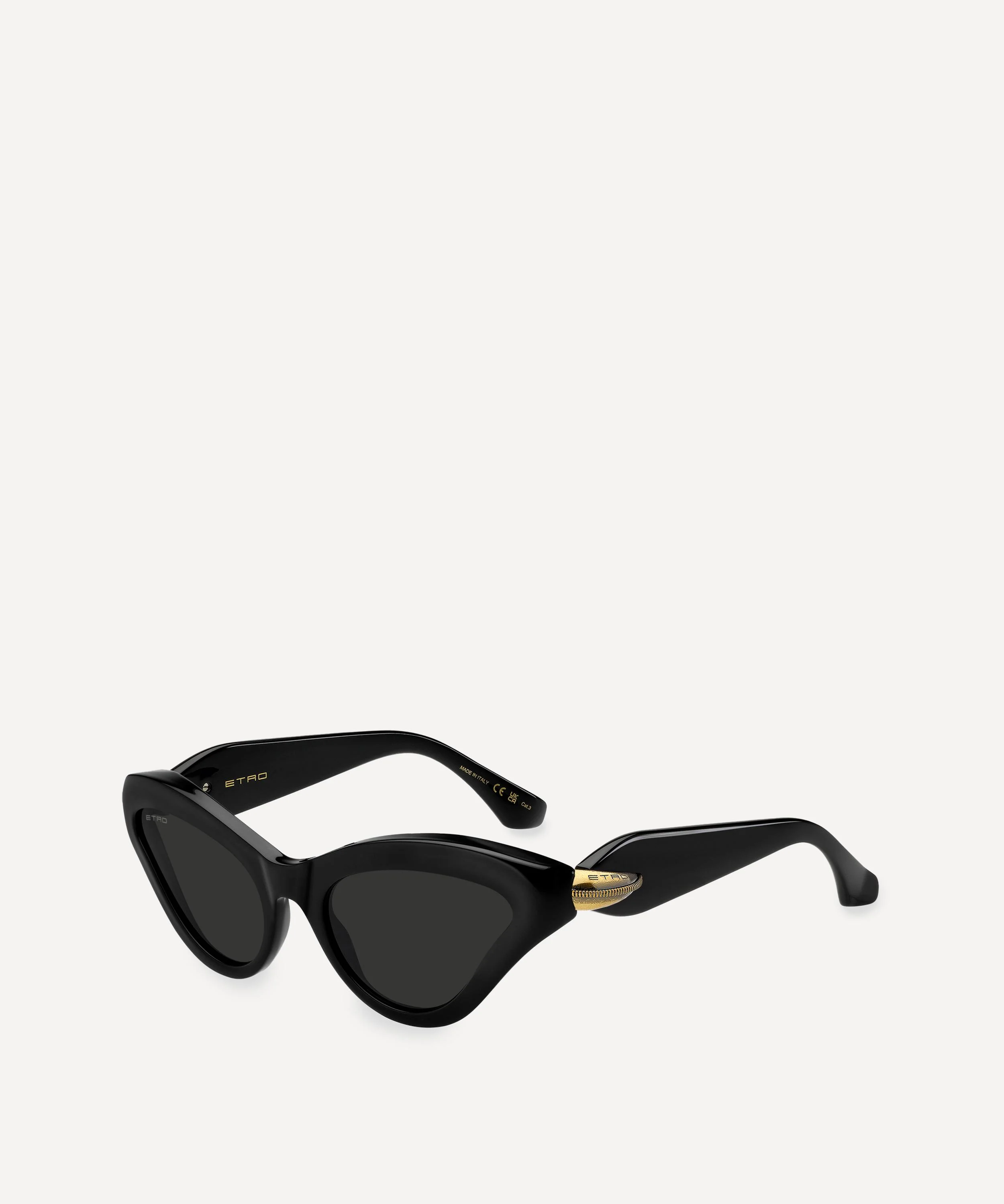 DETAILS Cat eye sunglasses Black acetate frames Black lenses Gold logo at the temple Lenses with UVA and UVB protection COMPOSITION & CARE Acetate Arm: 14 cm