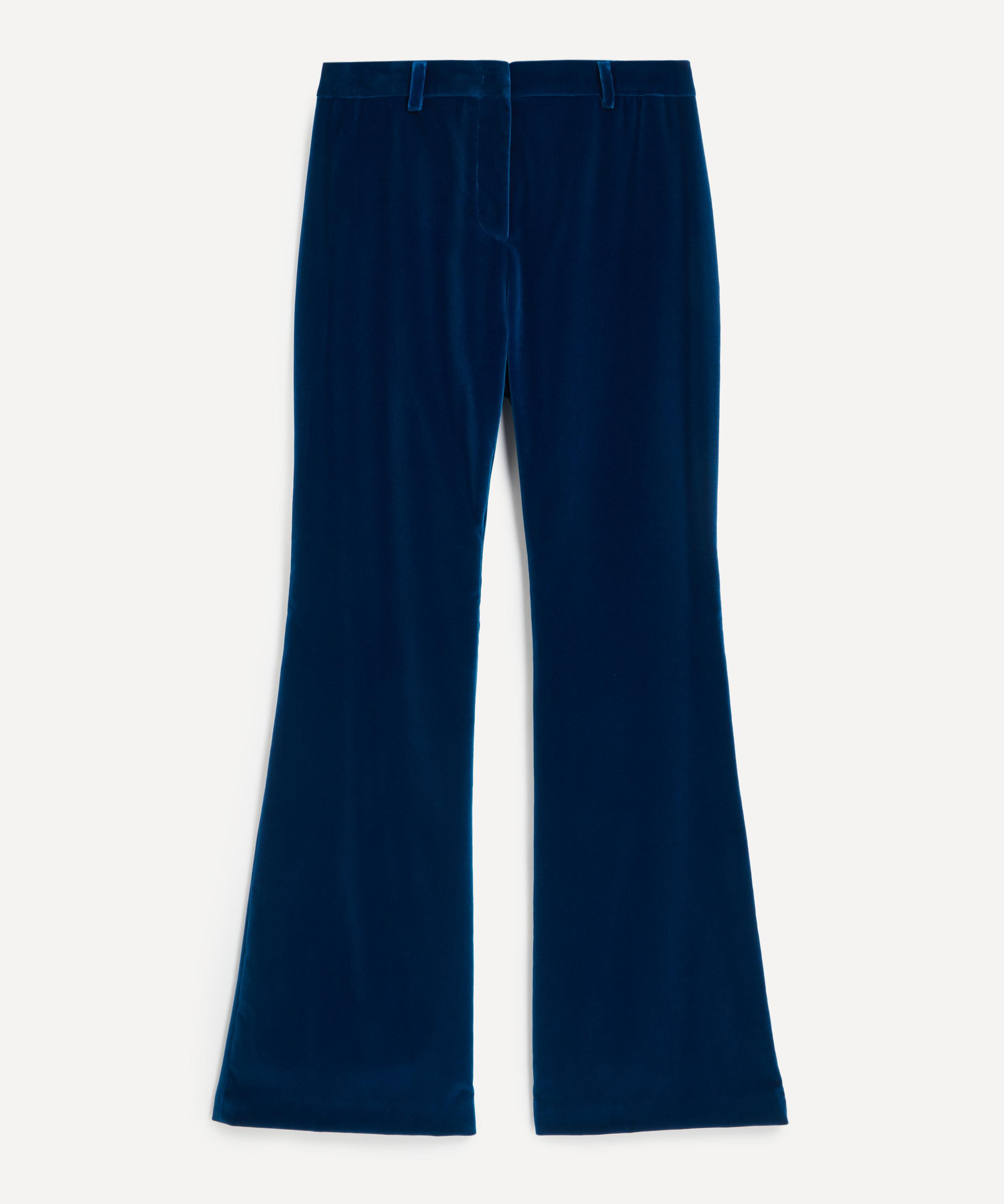 DETAILS Velvet trousers Tailored slim fit Flared leg Regular-rise waist Hook and zip closure Rear welt pockets Lined Made in Italy SIZE & FIT Model is 178cm/5'10"; Chest: 77cm; Waist: 65cm; Hip: 92cm and wears a size 8 COMPOSITION & CARE 98% Cotton; 2% Elastane Lining: 97% Viscose; 3% Elastane Dry clean